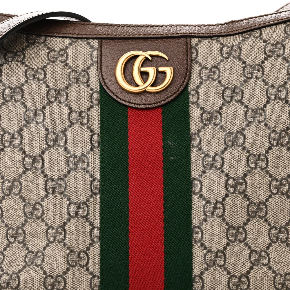 Gucci Small Web Ophidia Half Moon Hobo Brown GG Supreme Monogram Canvas Gold Hardware