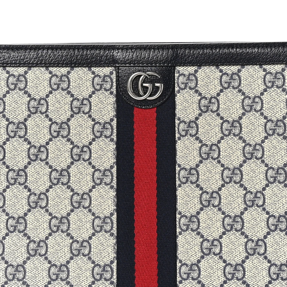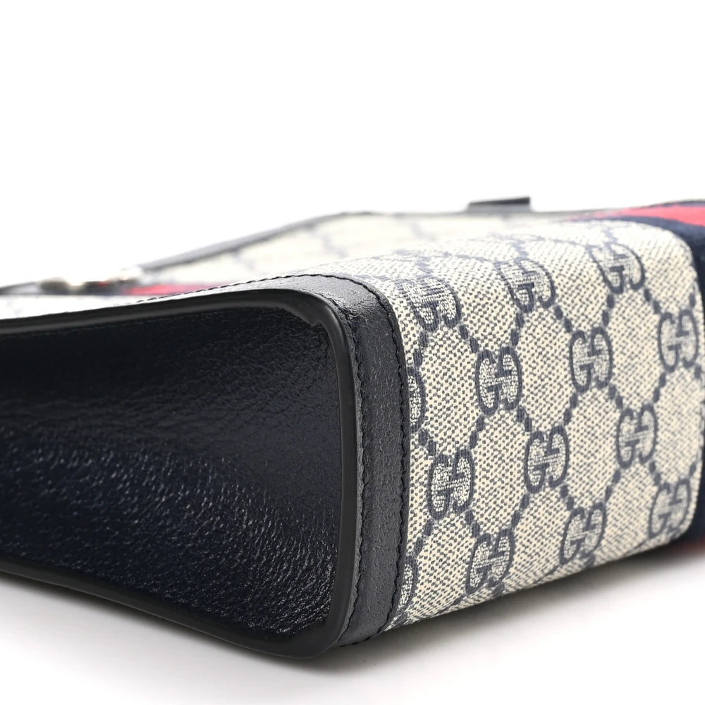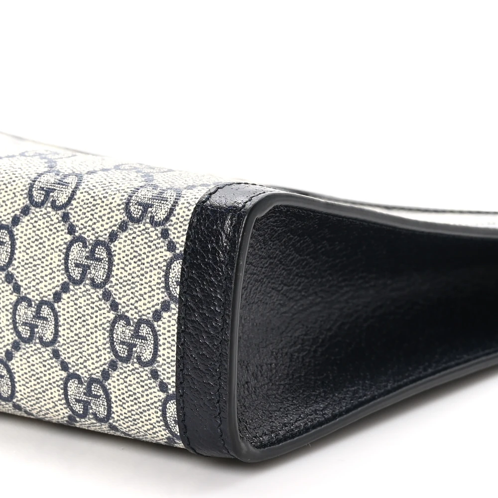 Gucci Small Web Ophidia Pouch Beige/Blue GG Supreme Monogram Canvas Gold Hardware