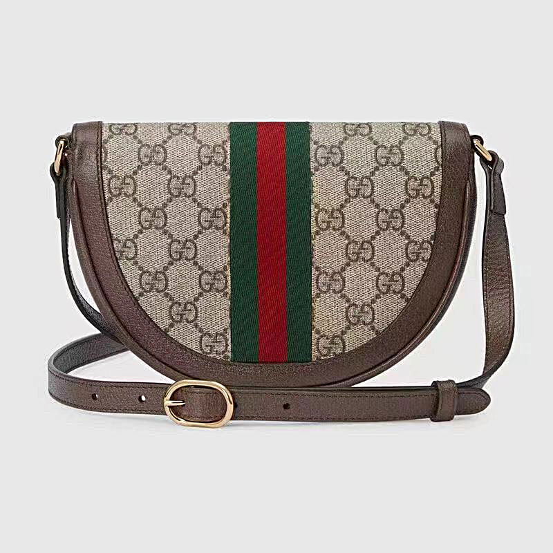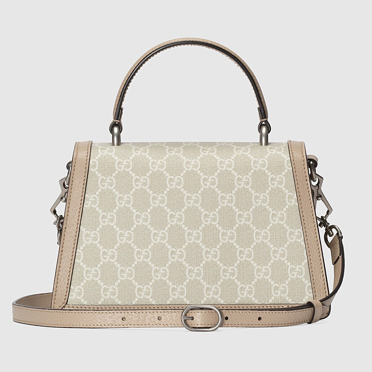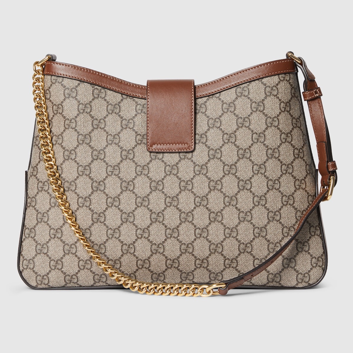 Gucci Large Web Attache Shoulder Bag Beige/Blue GG Supreme Monogram Canvas & Textured Calfskin Leather Silver Hardware