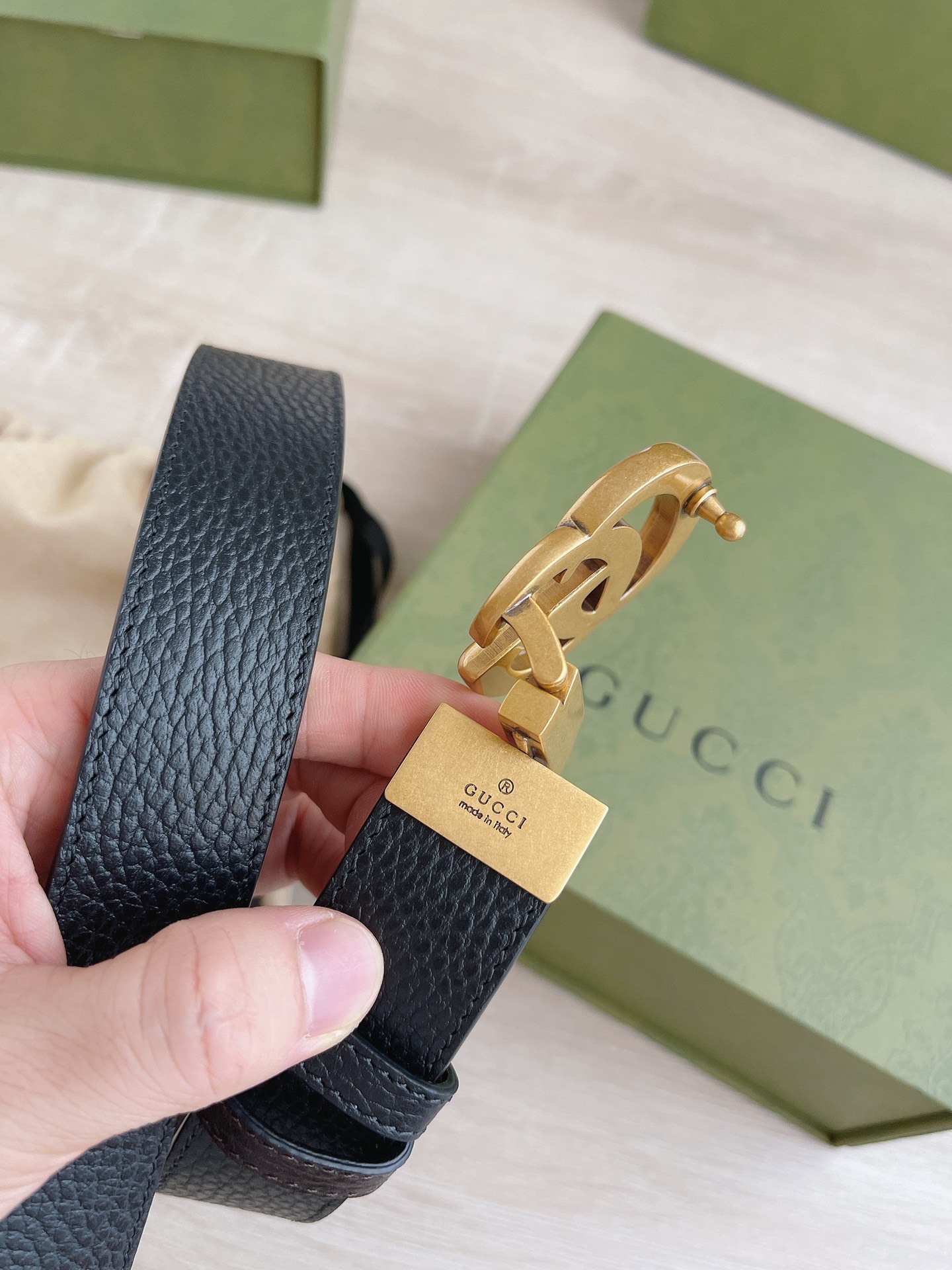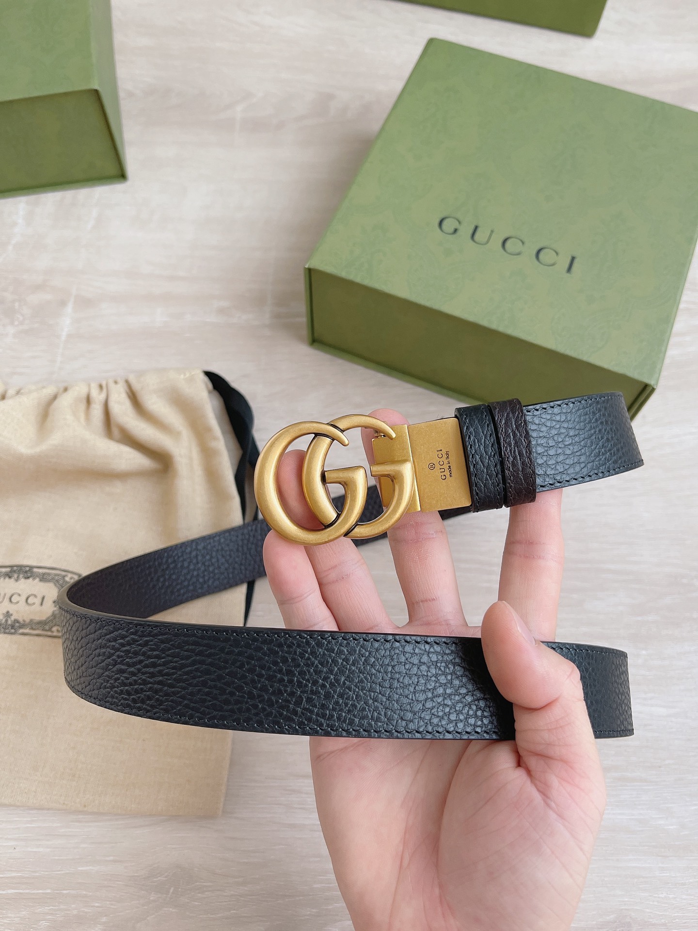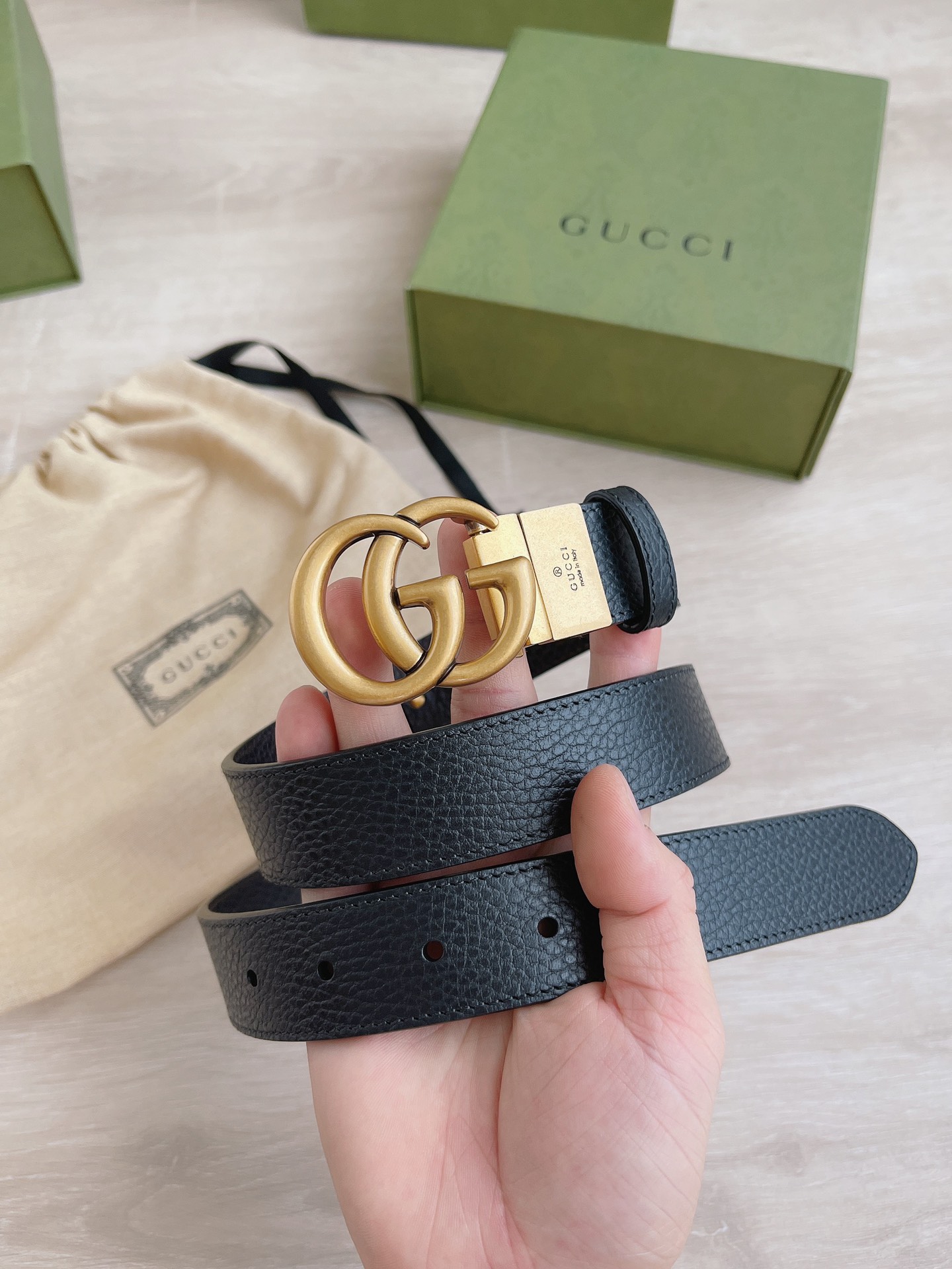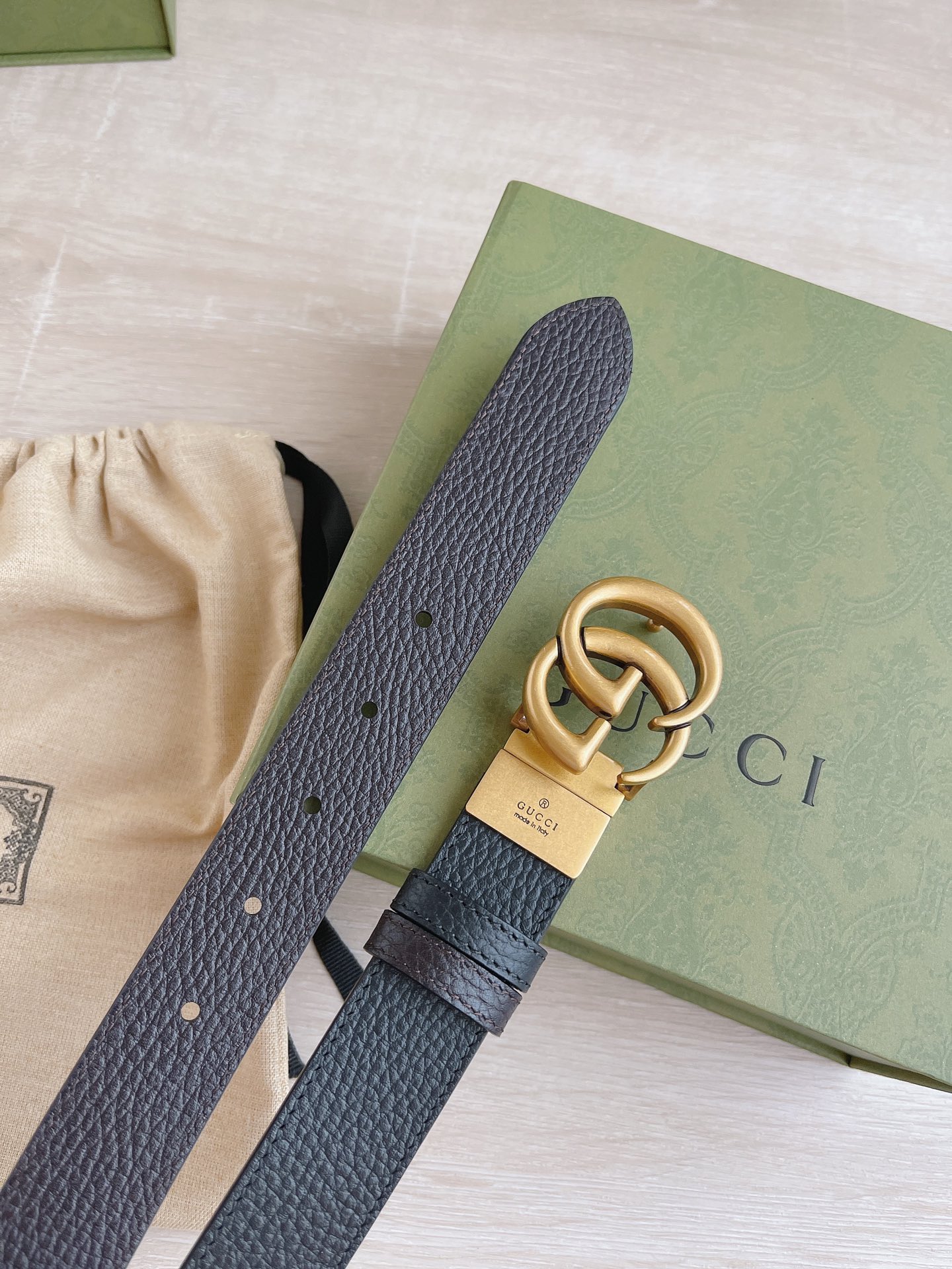 Gucci Women’s Double G Buckle Belt In Black Grained Calfskin With Gold Hardware 30mm