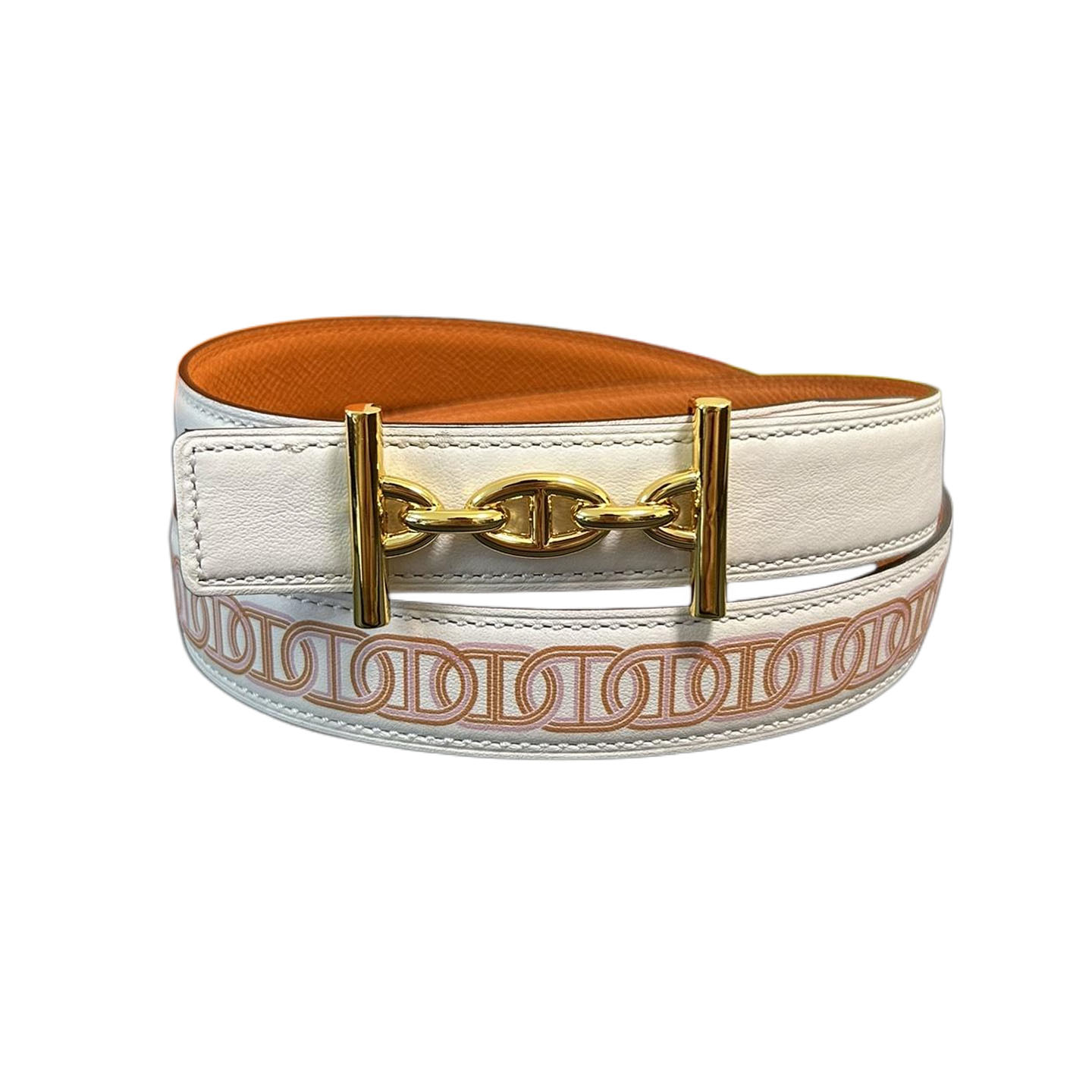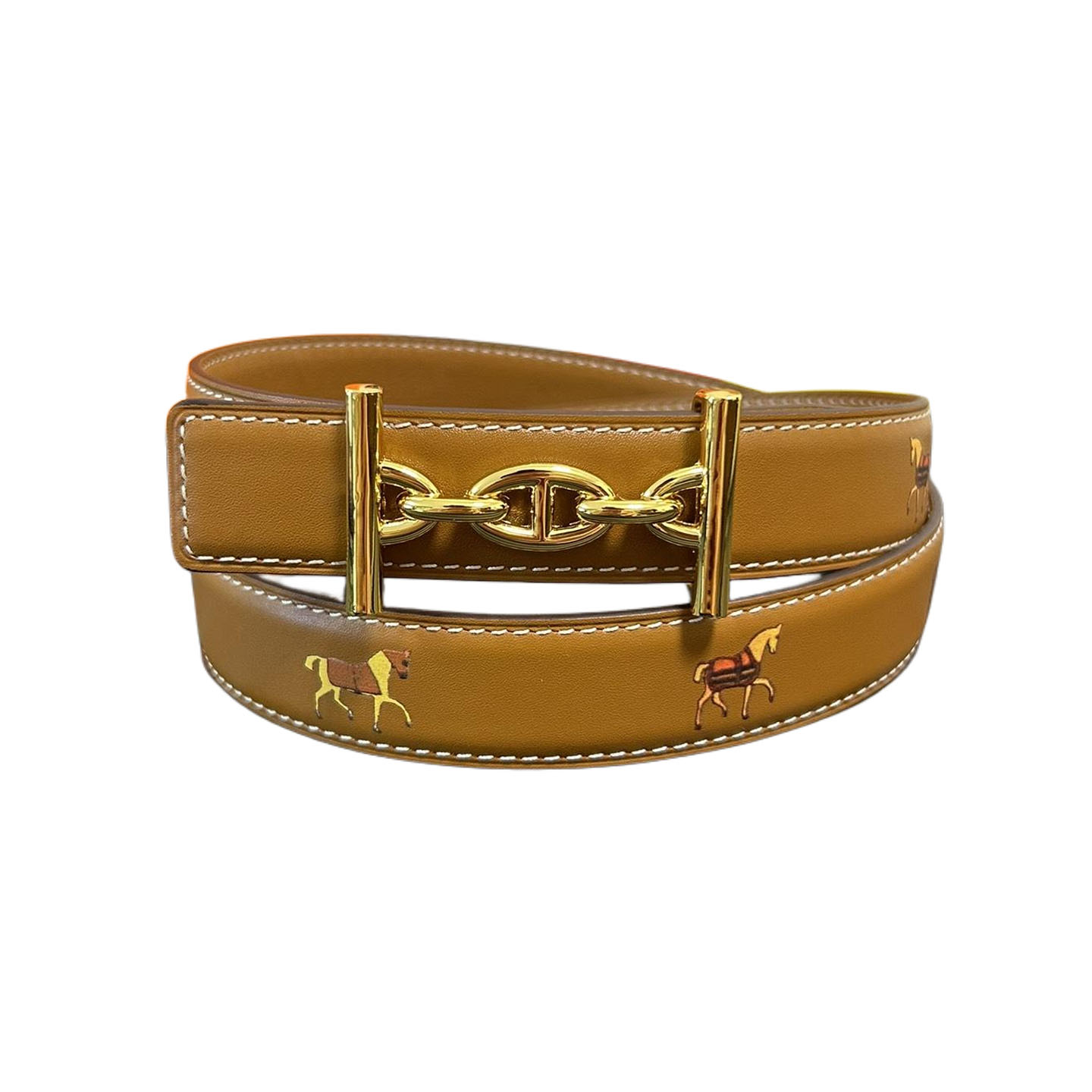 Hermès Women’ s Belt In Black/Brown/White/Orange Calfskin With Gold Hardware 25mm
