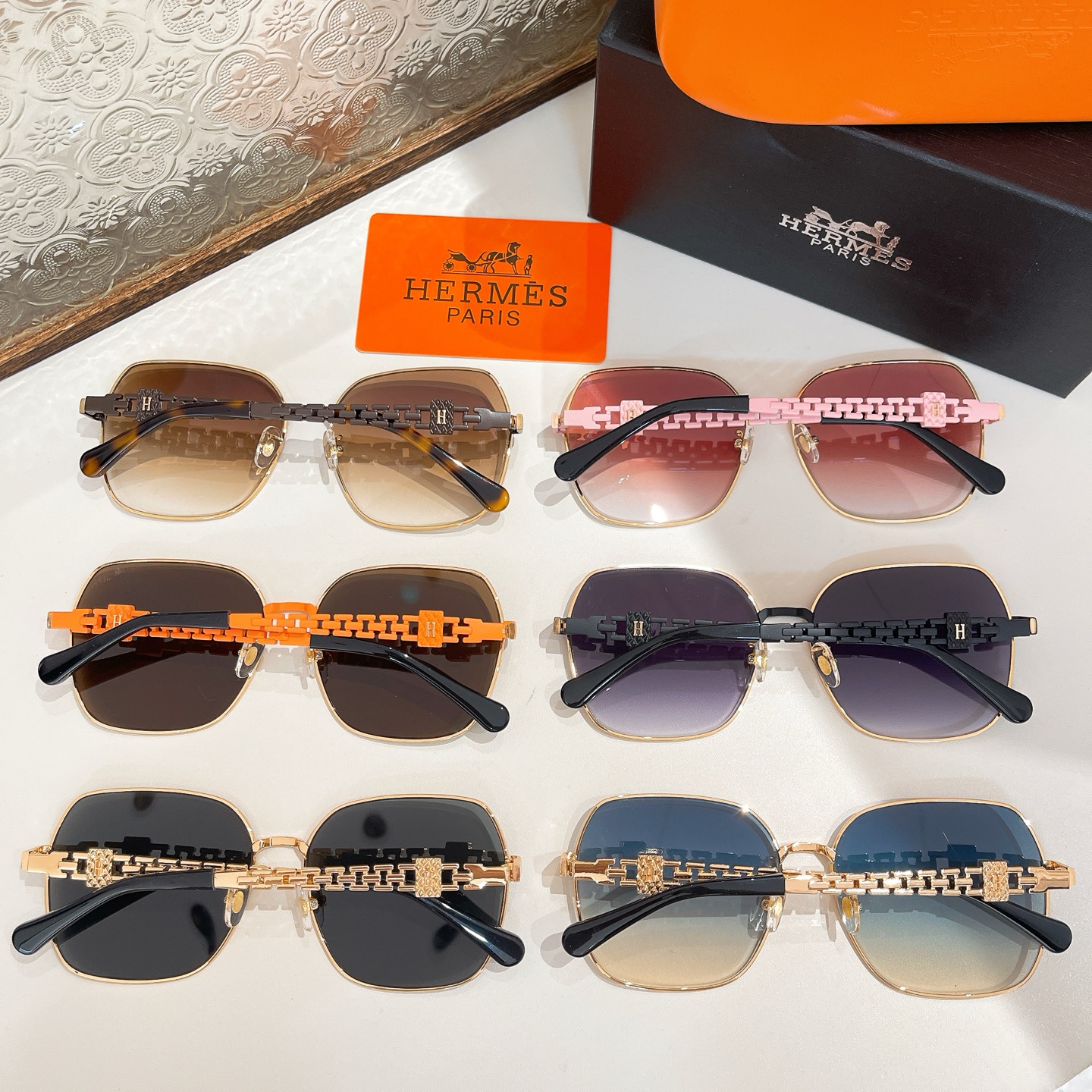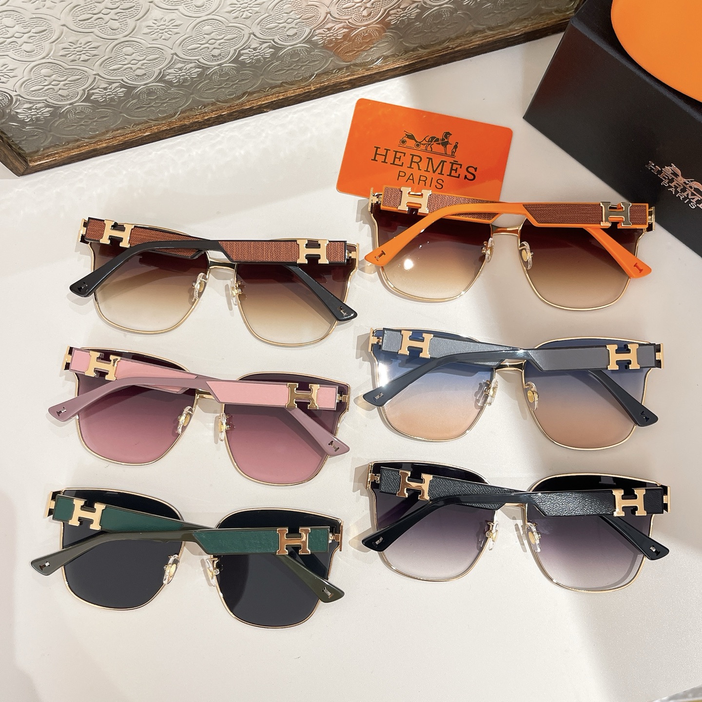 Hermès square frame glasses orange/green/white/black gold/black silver/blue/brown color Size 60口17-140