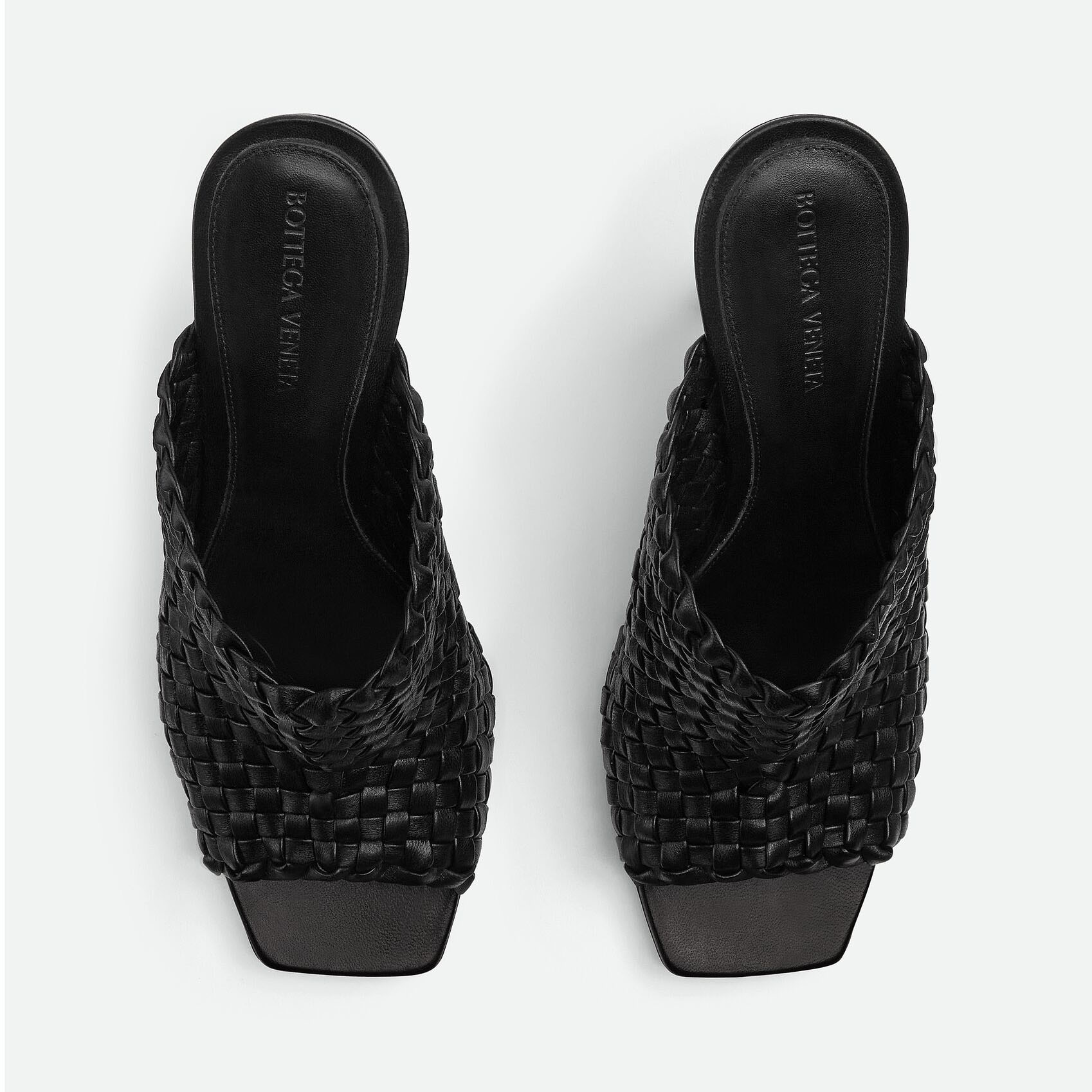 Bottega Veneta Knot Mule In Black Intrecciato Leather Mule With Gold Finished Metal Knot Heel (Heel Height 9cm)