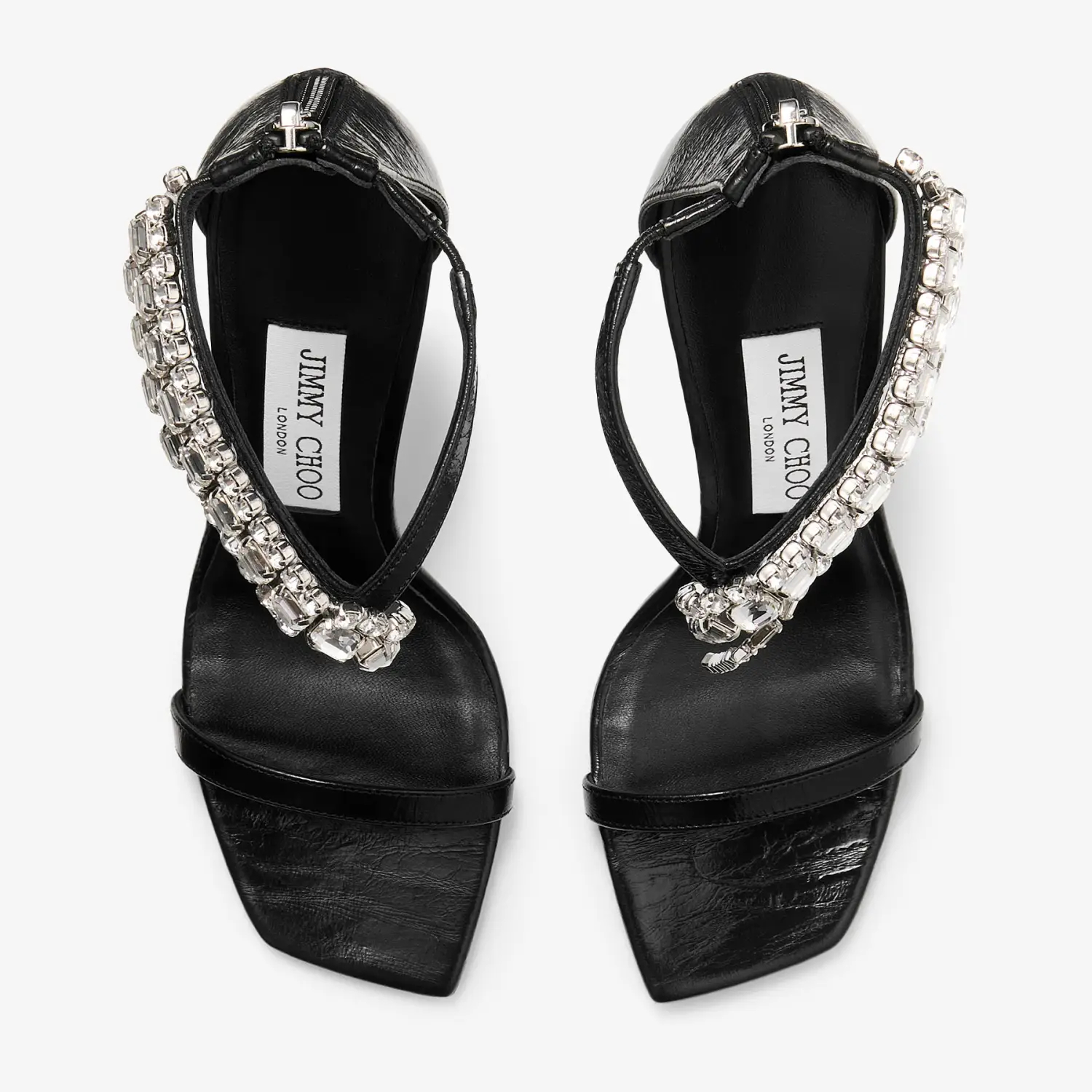 JIMMY CHOO Black vintage metallic texture leather high heeled sandals