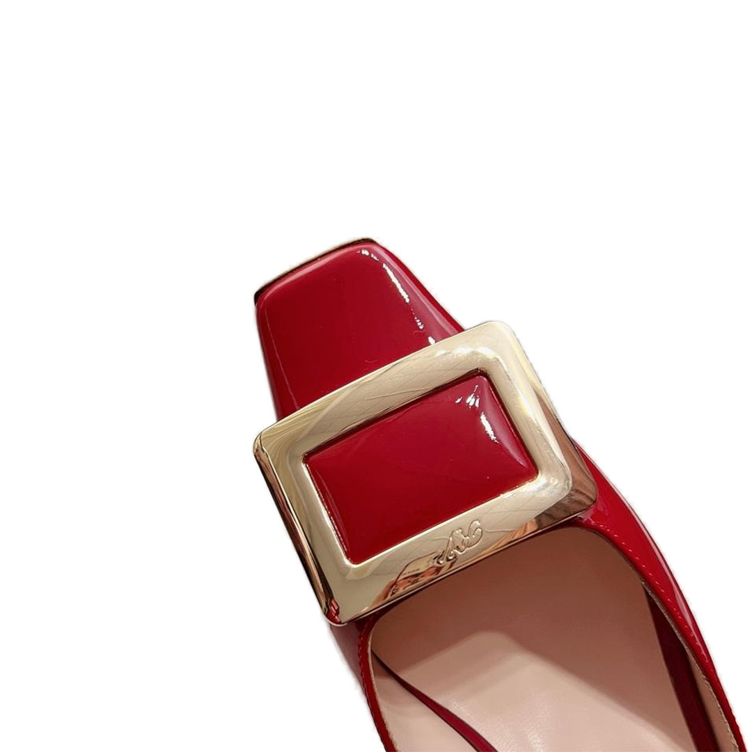 Roger Vivier Belle Vivier Mules Sandals In Red/Grey/Apricot/Beige/Pink/Black Patent Leather With Metal Buckle (Heel Height 4.5cm)