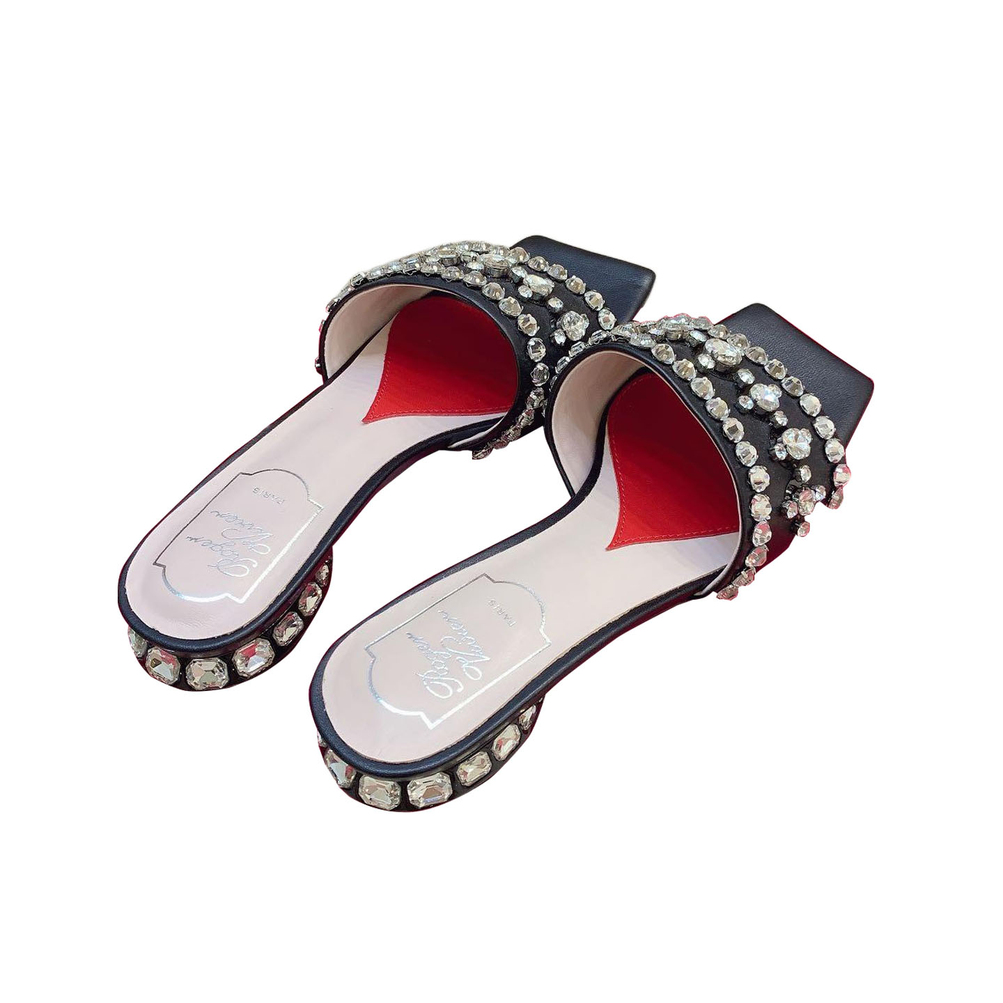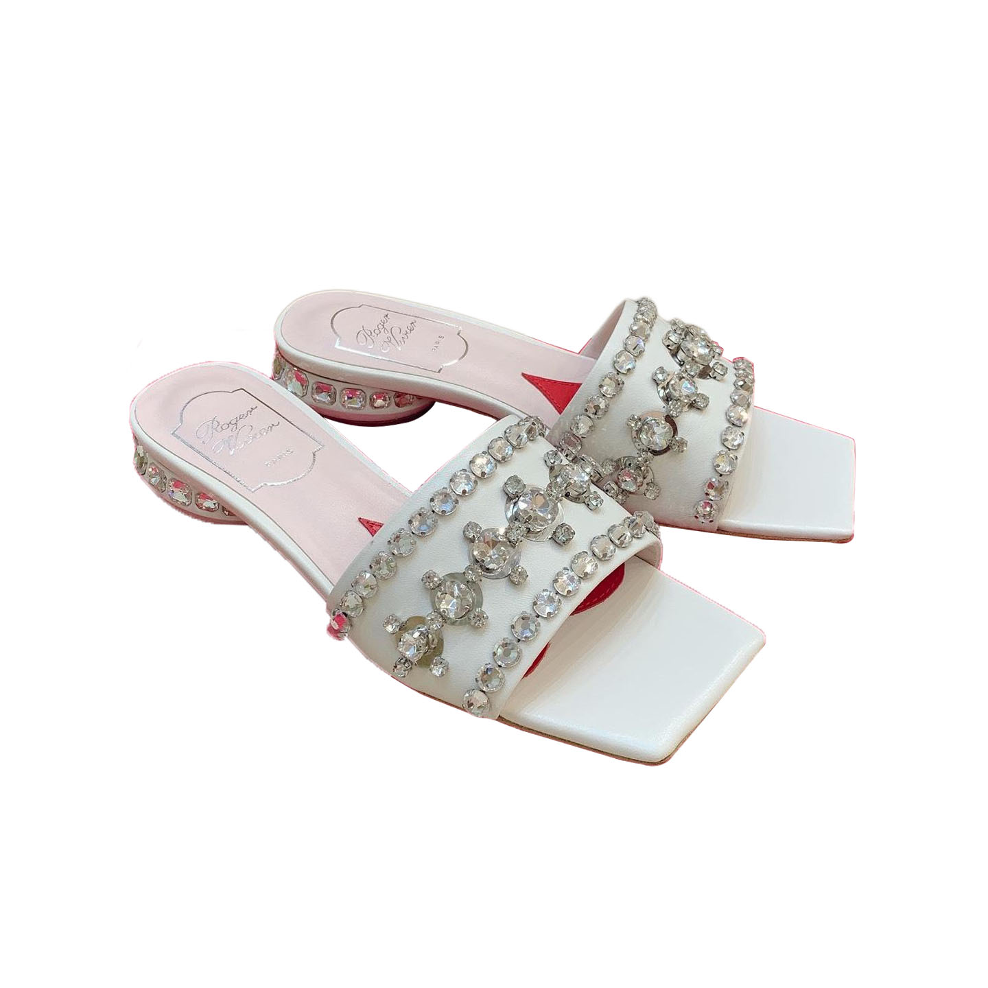 Roger Vivier Jewel Heels Sandals In Black/White Leather With Crystals (Heel Height 2.5cm)