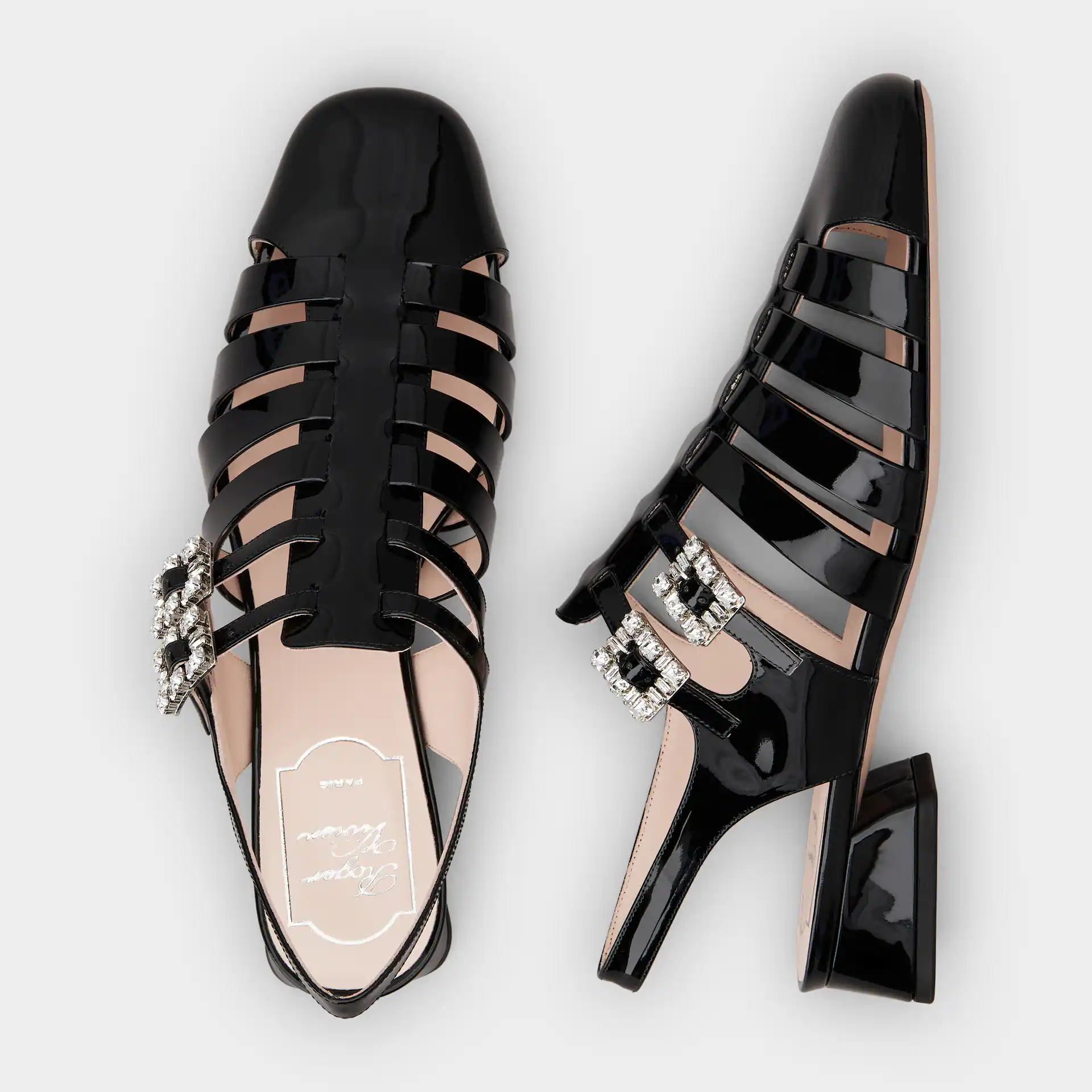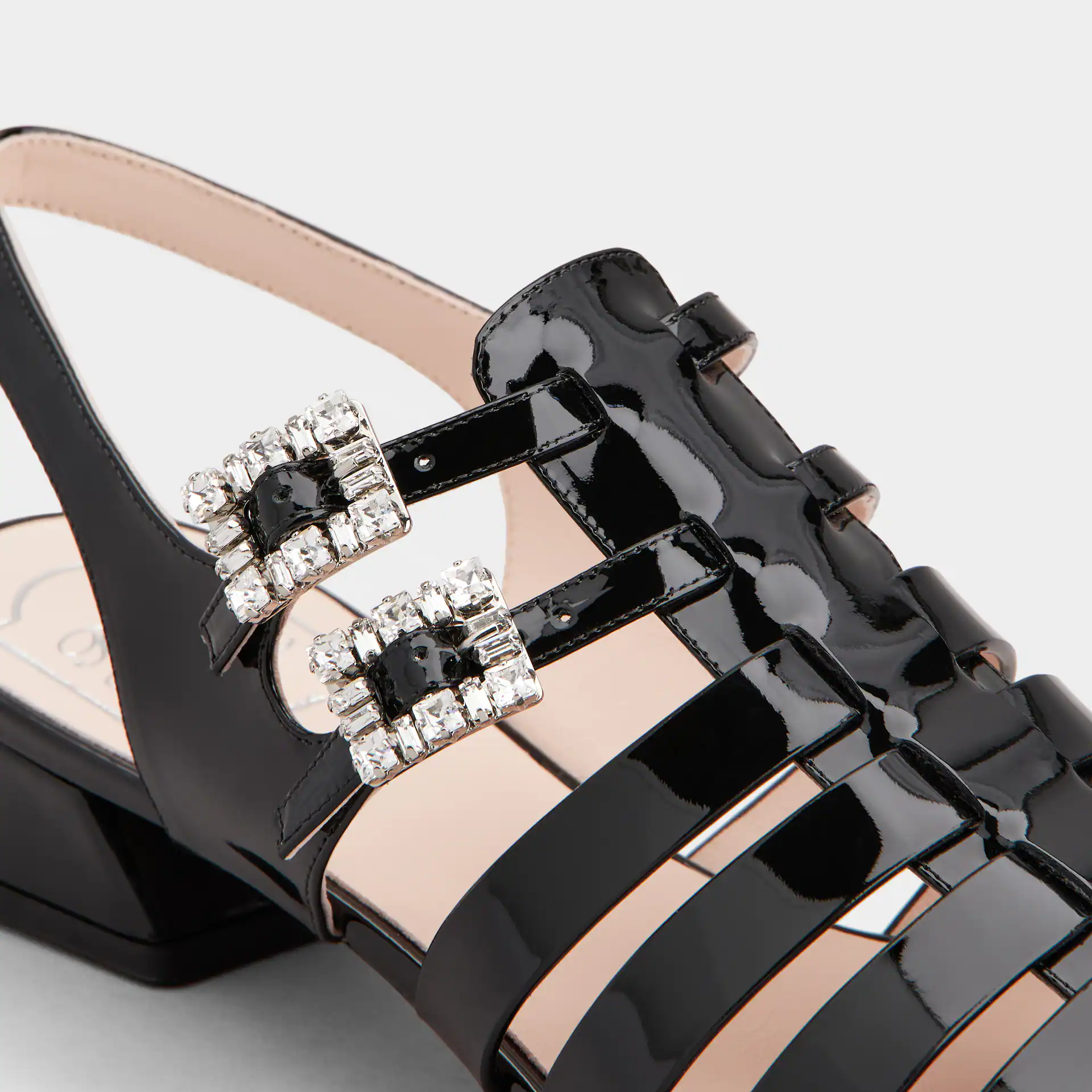 Roger Vivier Tr猫s Vivier Sandals In Black Patent Leather With Crystal Buckle (Heel Height 4.5cm)