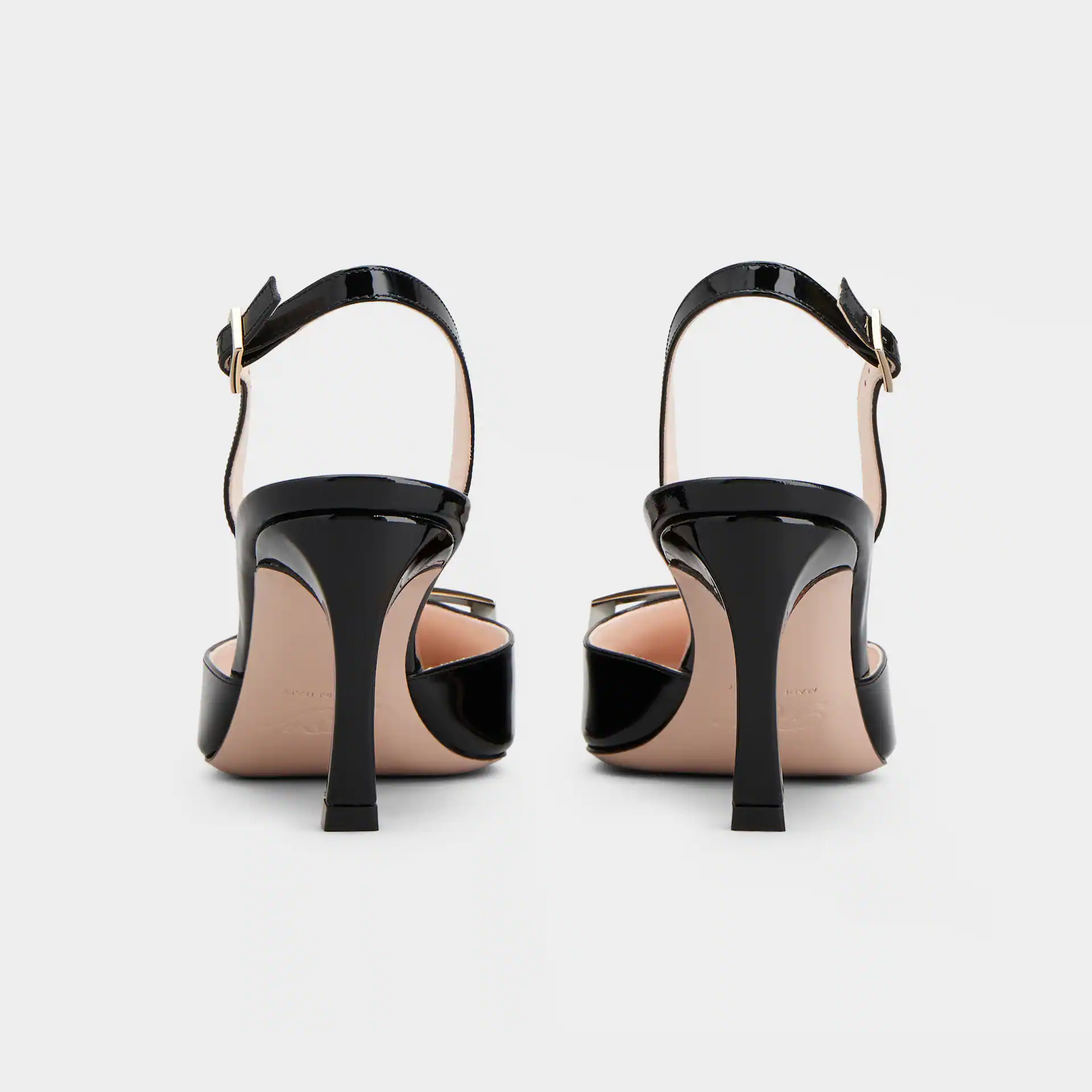 • Roger Vivier Trompette Slingback Pumps High Heels In Black Patent Leather With Metal Buckle (Heel Height 7cm)
