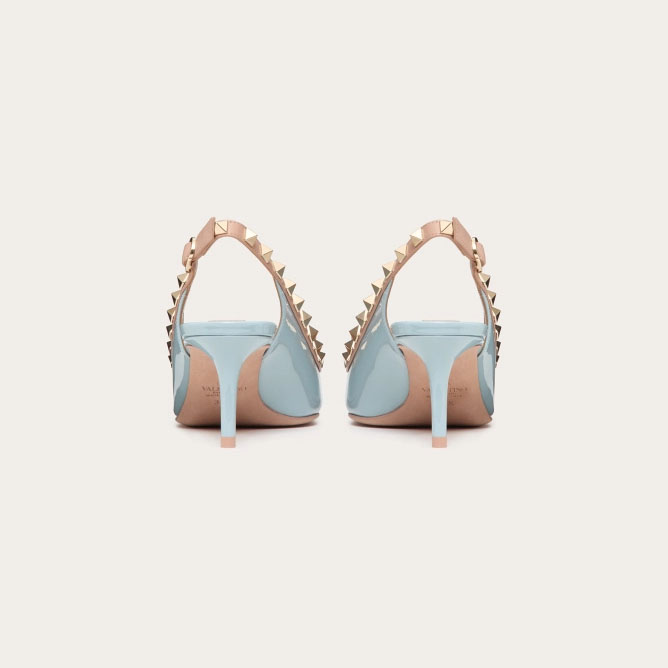 VALENTINO Lace-up heels in patent leather with rivet bow in the same color (heel height: 6cm)