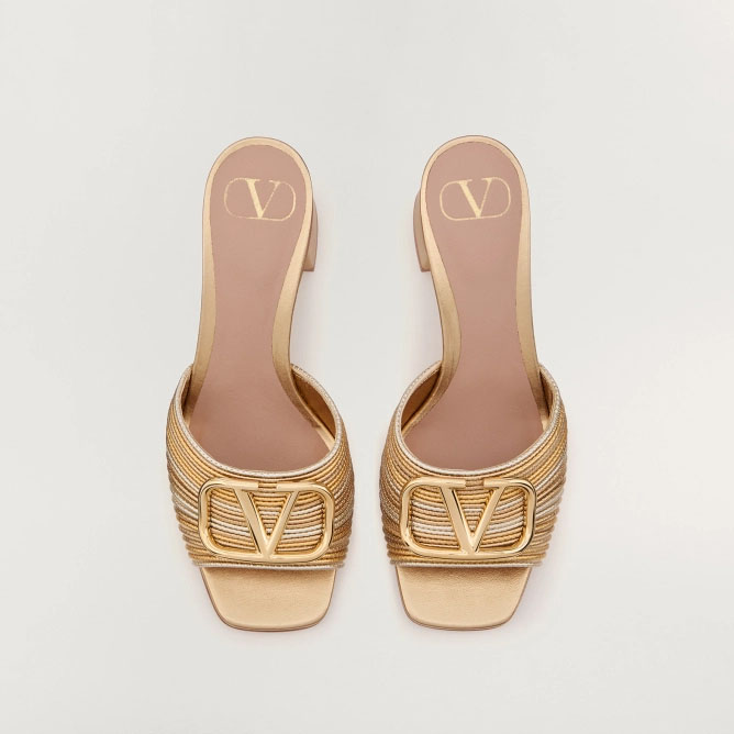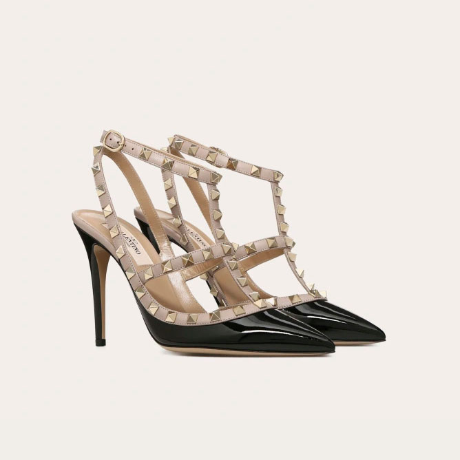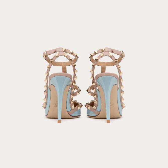 VALENTINO Barbie powder patent rivet slipper sandals (heel height 6cm)