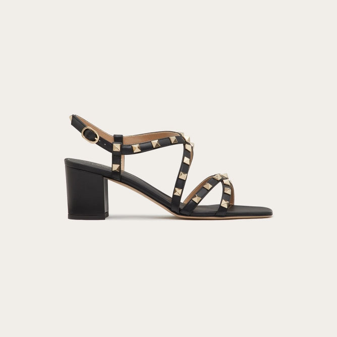VALENTINO Black calfskin rivet heel sandals (heel height 6cm)