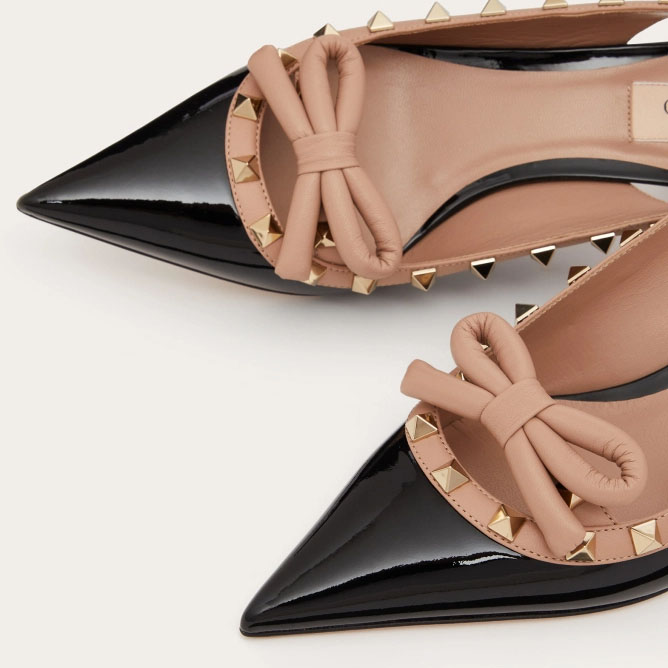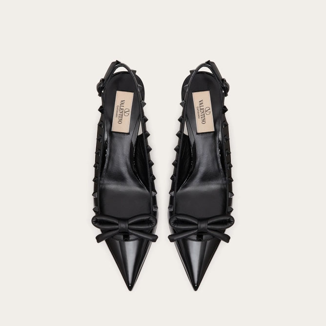 VALENTINO Lace-up heels in patent leather with rivet bow in the same color (heel height: 6cm)