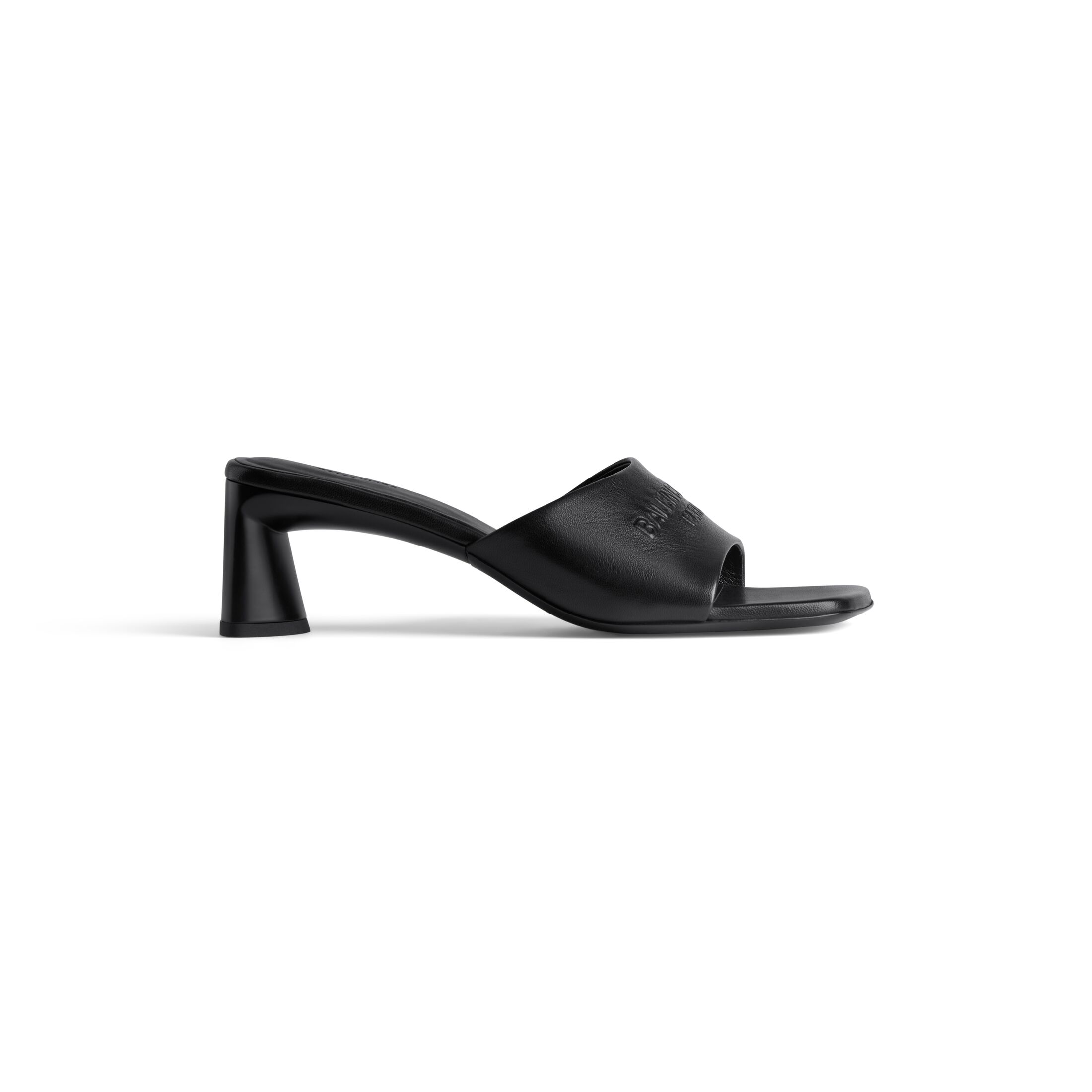 BALENCIAGA Black square toe chunky heel 60 mm sandals High Heels Slippers
