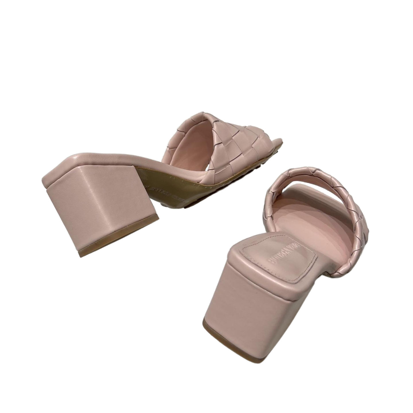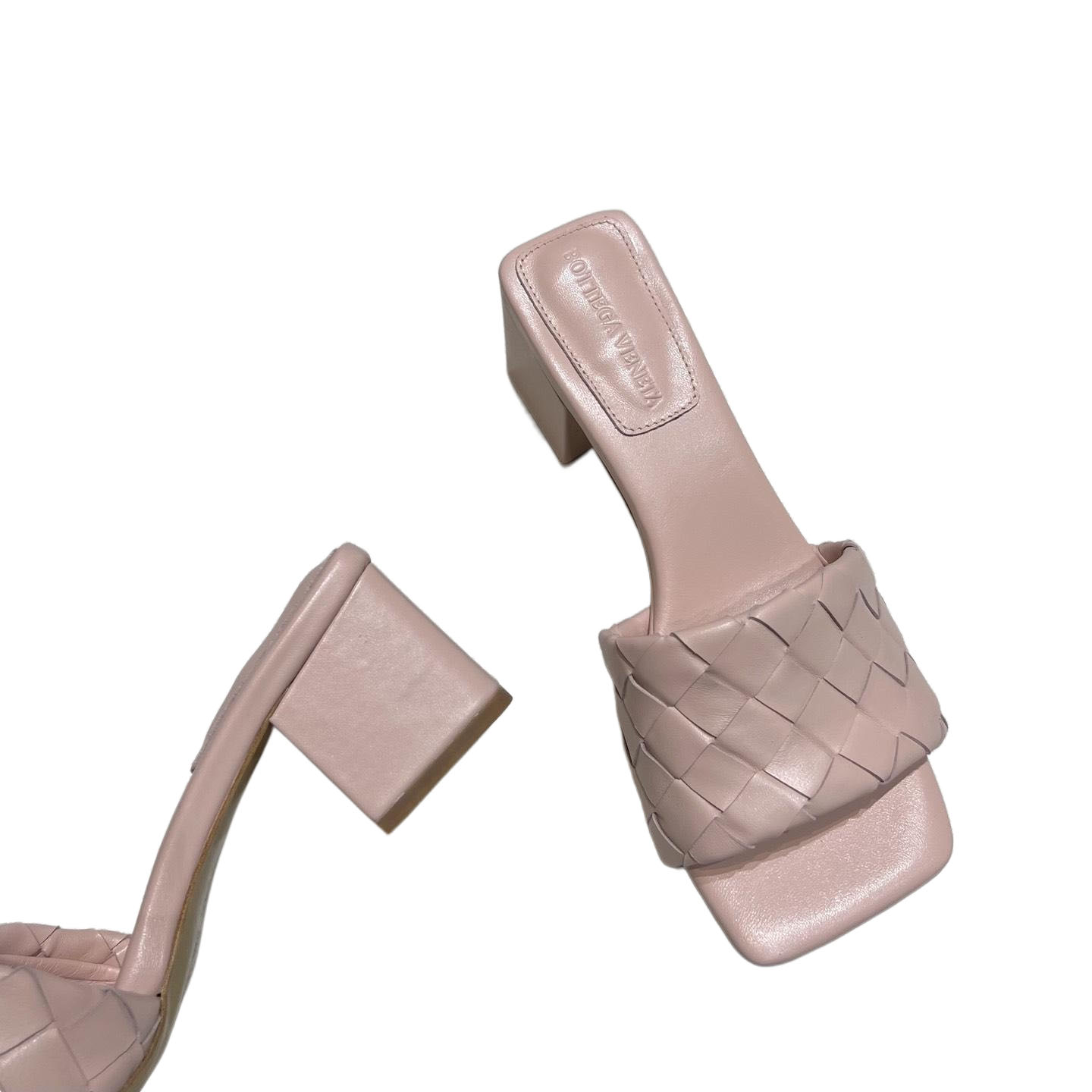 • Bottega Veneta Parco Mule In Pink Intrecciato Leather Kitten-Heel Mule Sandal (Heel Height 4.5cm)