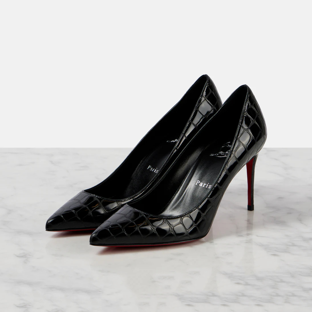 Christian Louboutin Black imitation crocodile leather heels