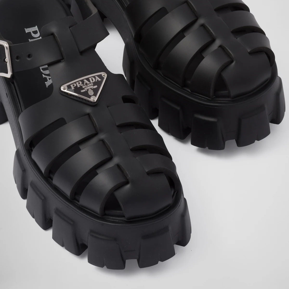 PRADA Black rubber Monolith sandals