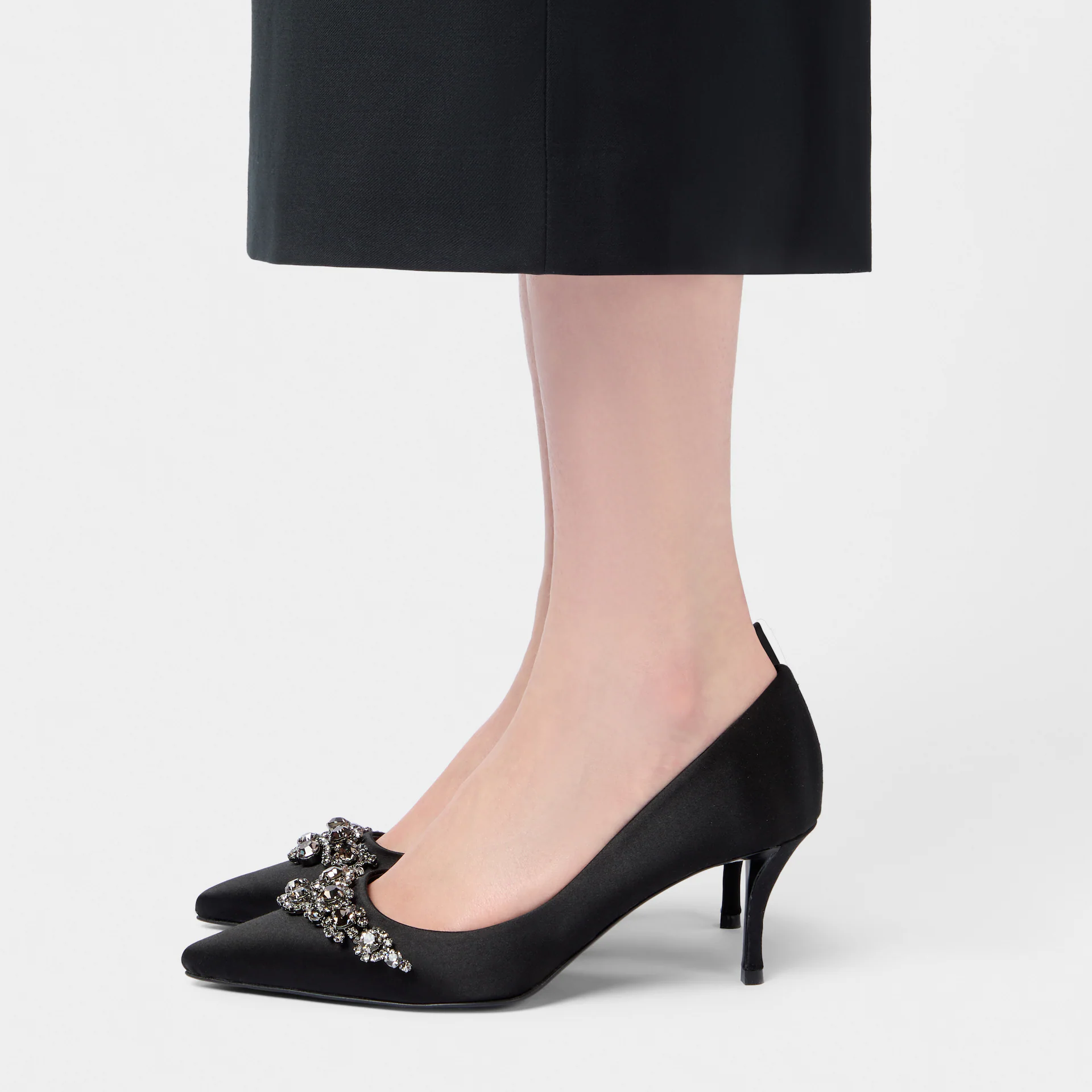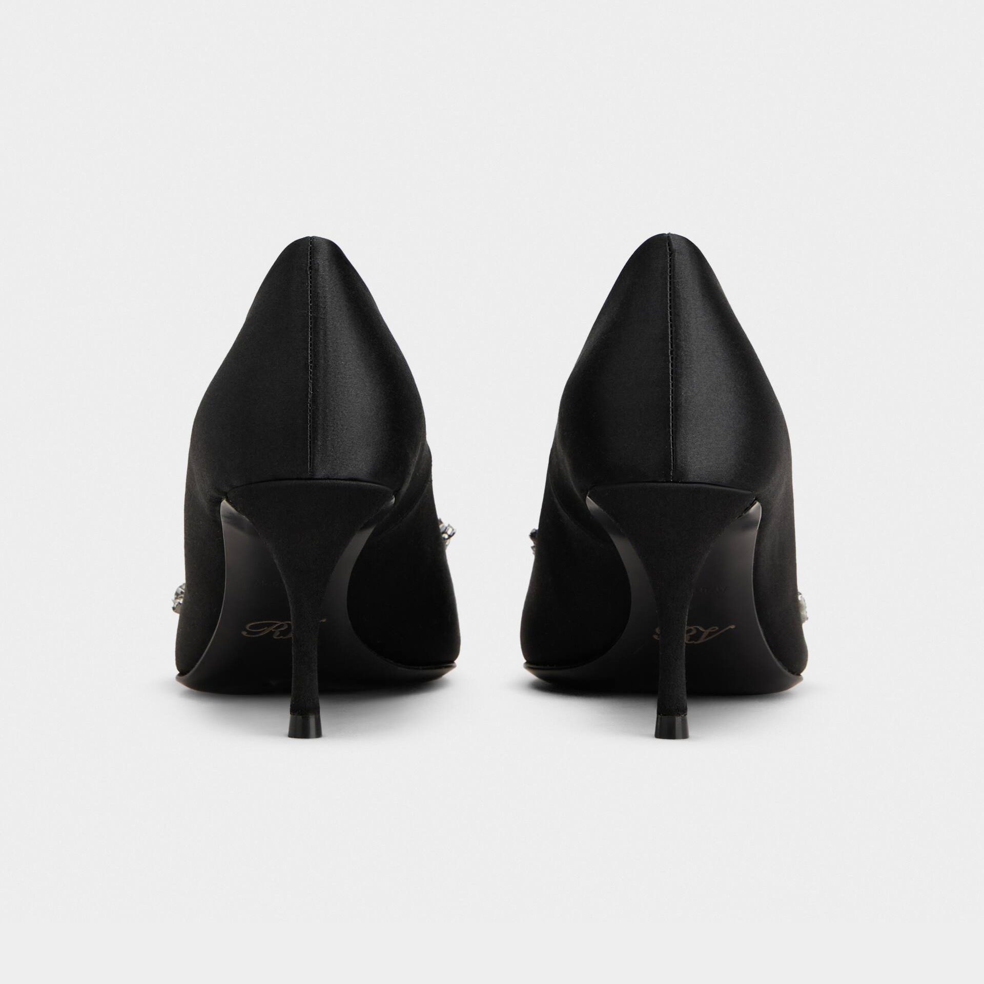 Roger Vivier Efflorescence Pumps High Heels In Black Satin With Crystal Flowers Buckle (Heel Height 6.5cm)