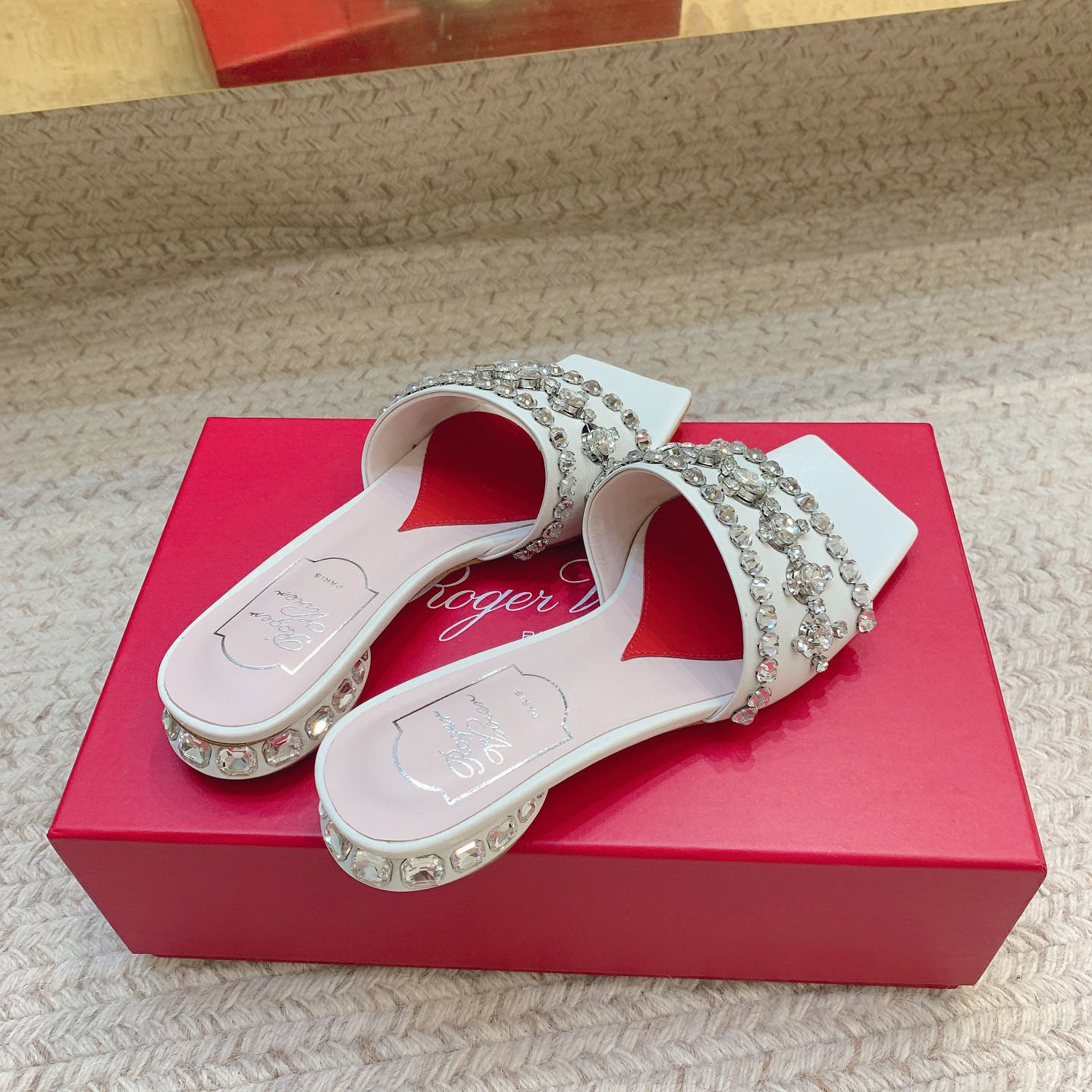 Roger Vivier Jewel Heels Sandals In Black/White Leather With Crystals (Heel Height 2.5cm)