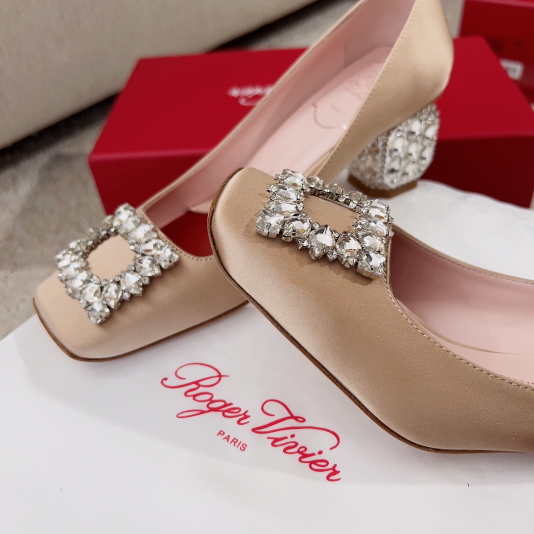 Roger Vivier Jewel Heels Sandals In Green/Pink/Blue/Black/Beige Satin With Crystal Buckle (Heel Height 5cm)