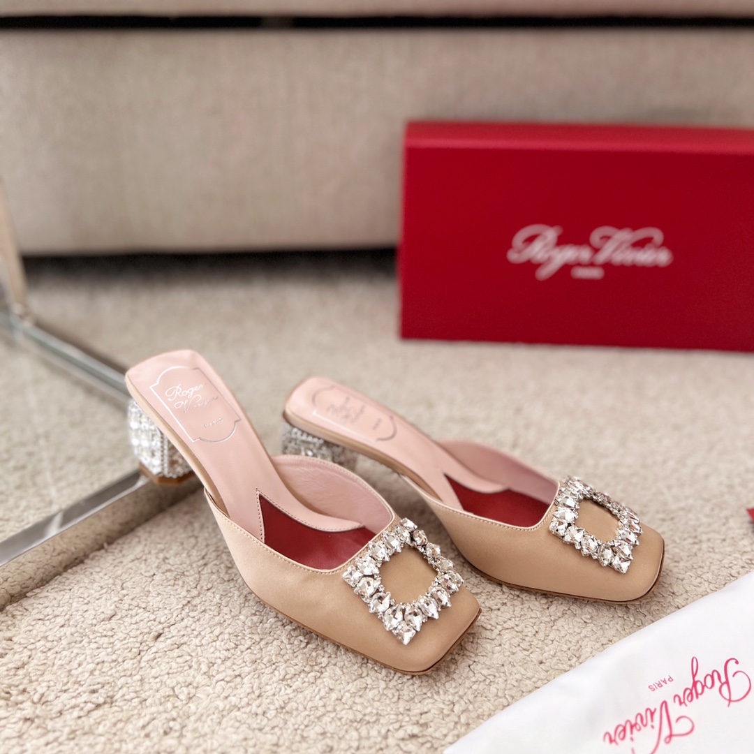 • Roger Vivier Jewel Heels Sandals In Green/Pink/Blue/Black/Beige Satin With Crystal Buckle (Heel Height 5cm)