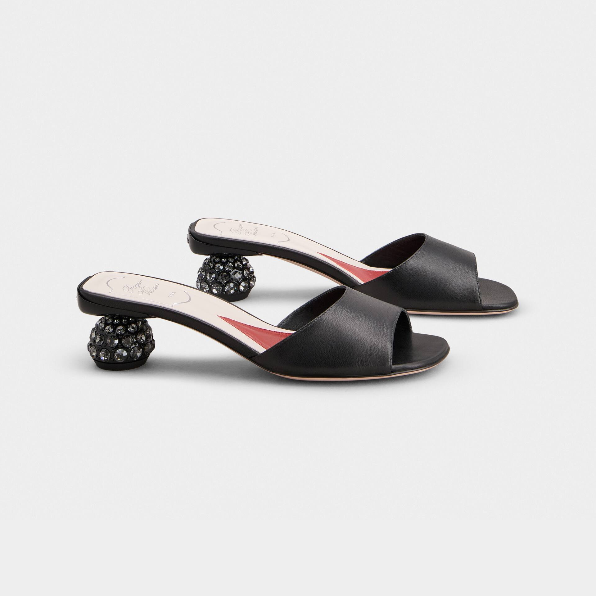 Roger Vivier Mules Sandals In Black/White Leather Crystal Heels (Heel Height 4cm)