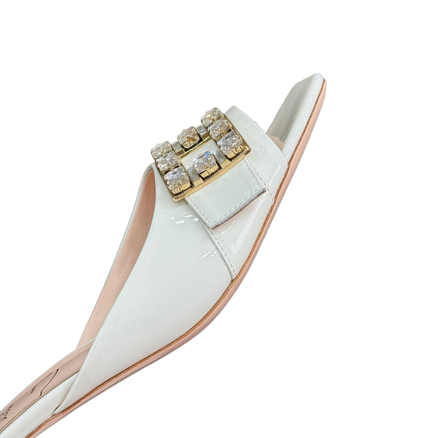 • Roger Vivier Tr猫s Vivier Mules High Heels In White/Black Patent Leather With Crystal Buckle (Heel Height 3.5cm)