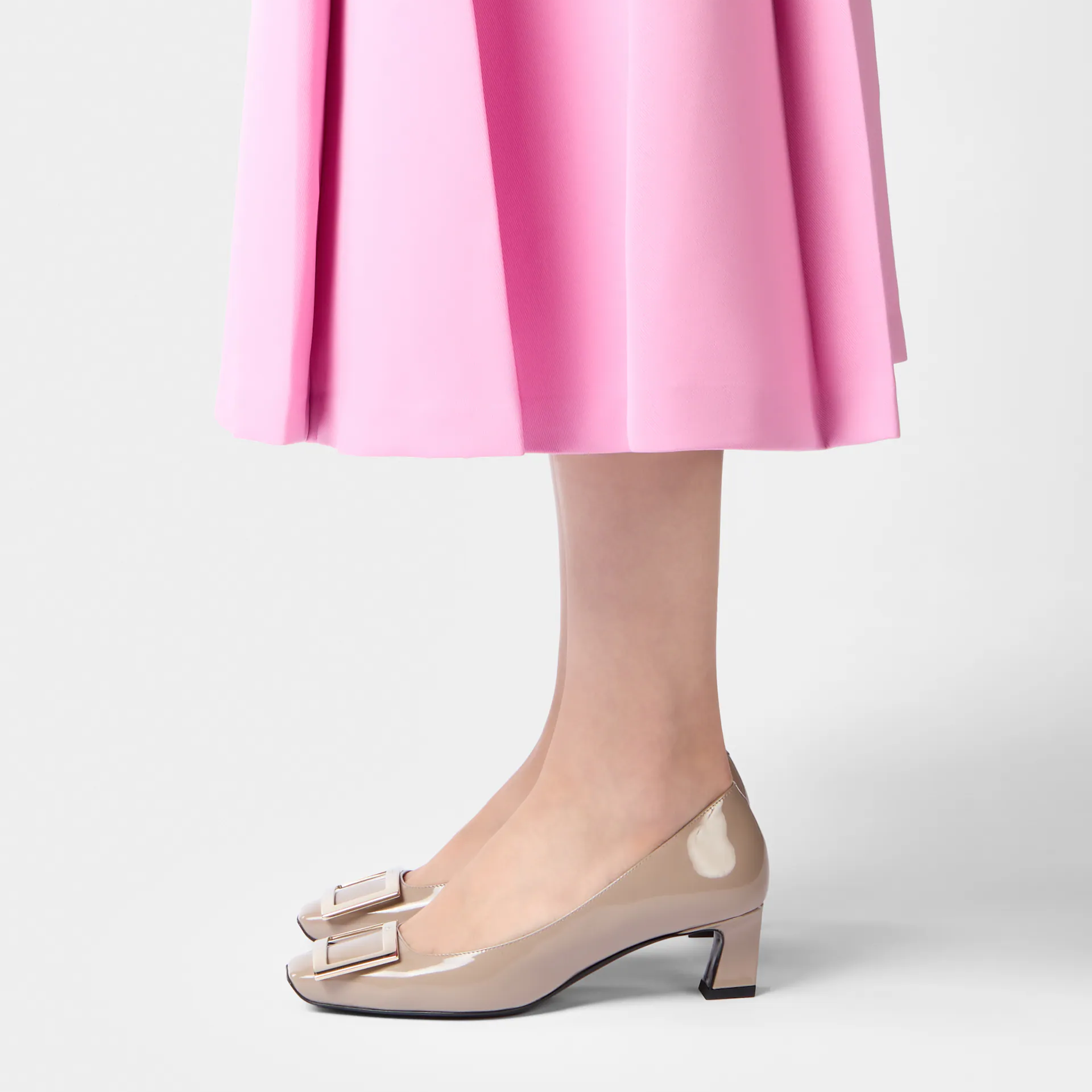 Roger Vivier Trompette Pumps High Heels In Beige Patent Leather With Metal Buckle (Heel Height 4.5cm)