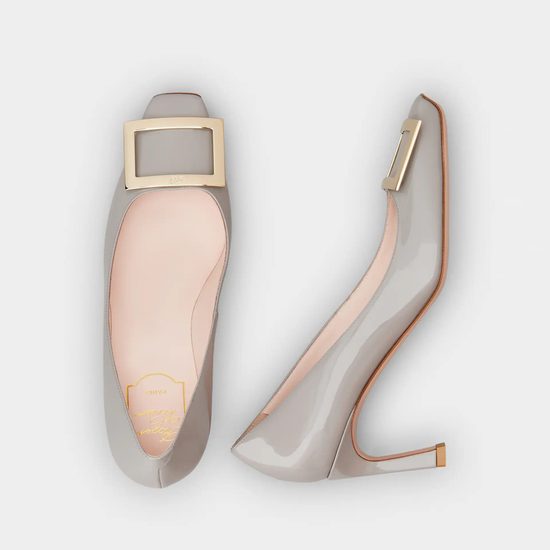Roger Vivier Trompette Pumps High Heels In Grey Patent Leather With Metal Buckle (Heel Height 7cm)