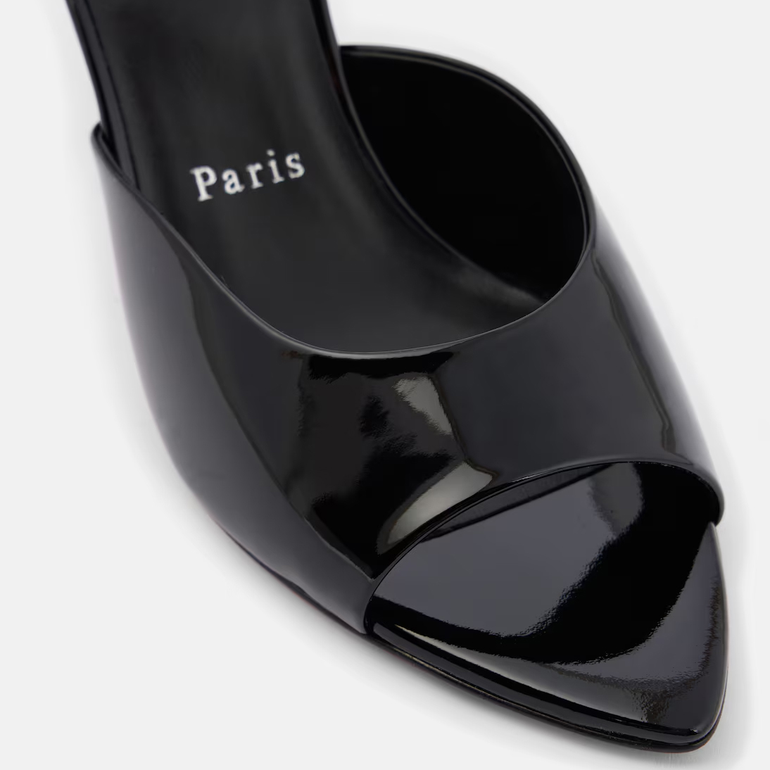 Christian Louboutin Black patent leather high-heeled sandal slippers