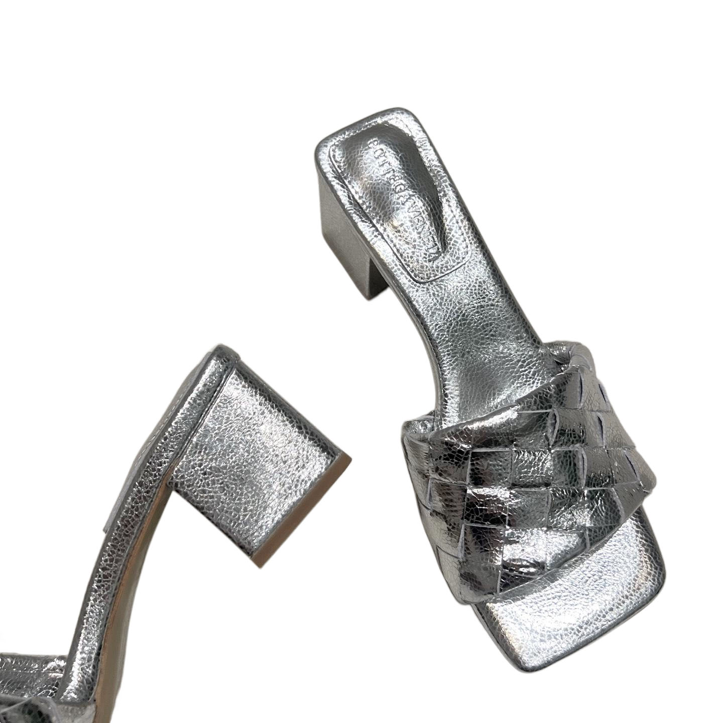 Bottega Veneta Parco Mule In Silver Intrecciato Leather Mule (Heel Height 9cm)