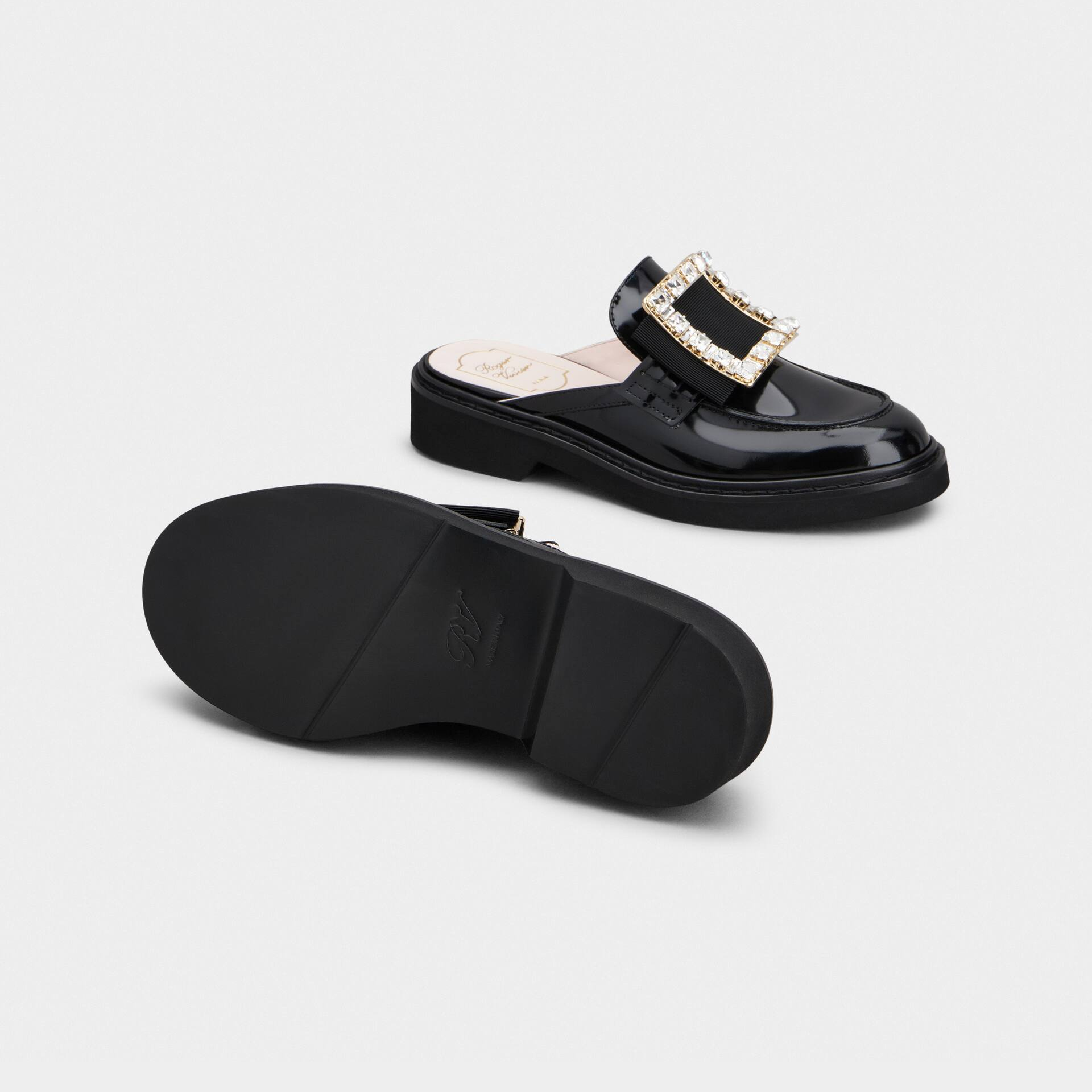 Roger Vivier Viv�� Rangers Mules Loafers In Black Patent Leather With Crystal Buckle