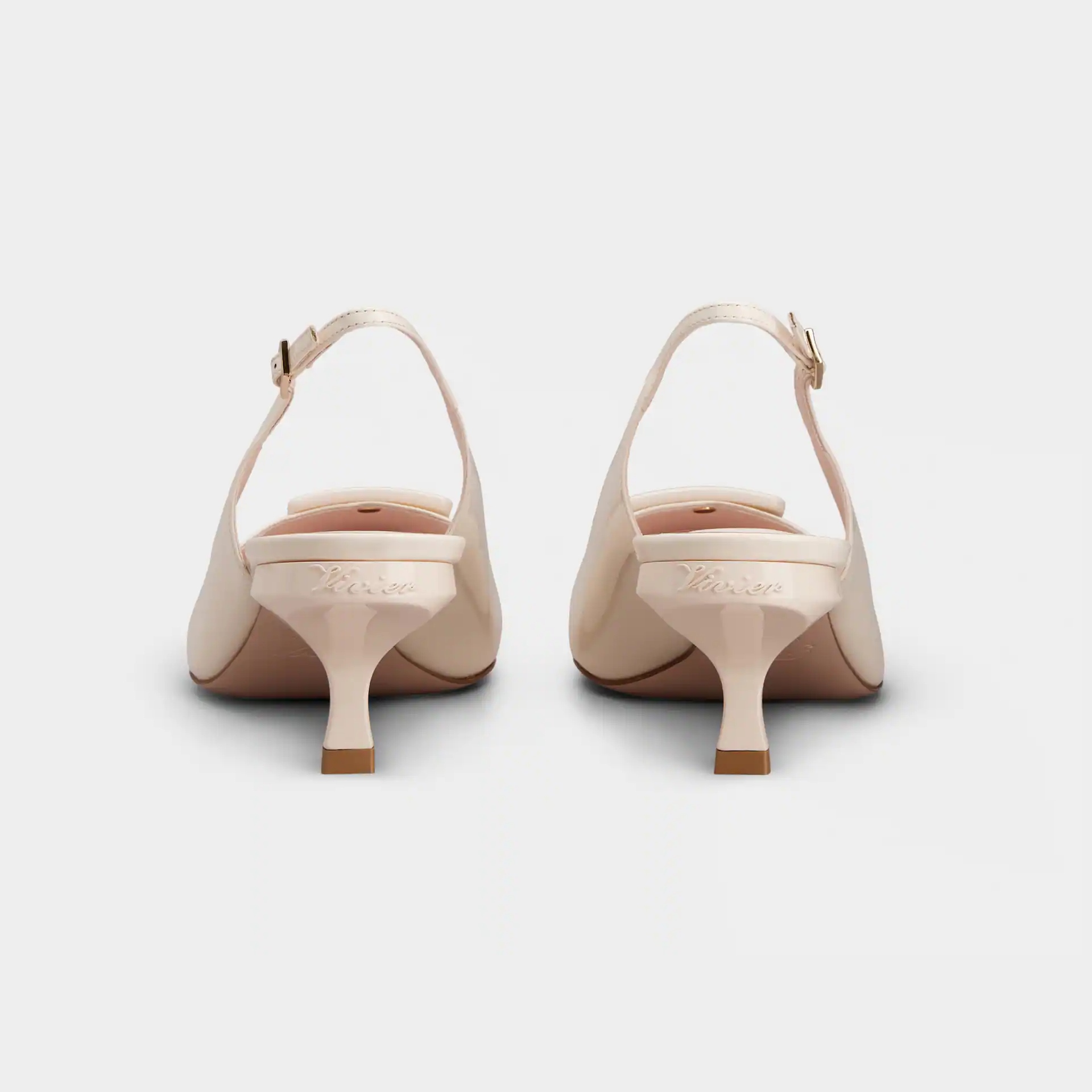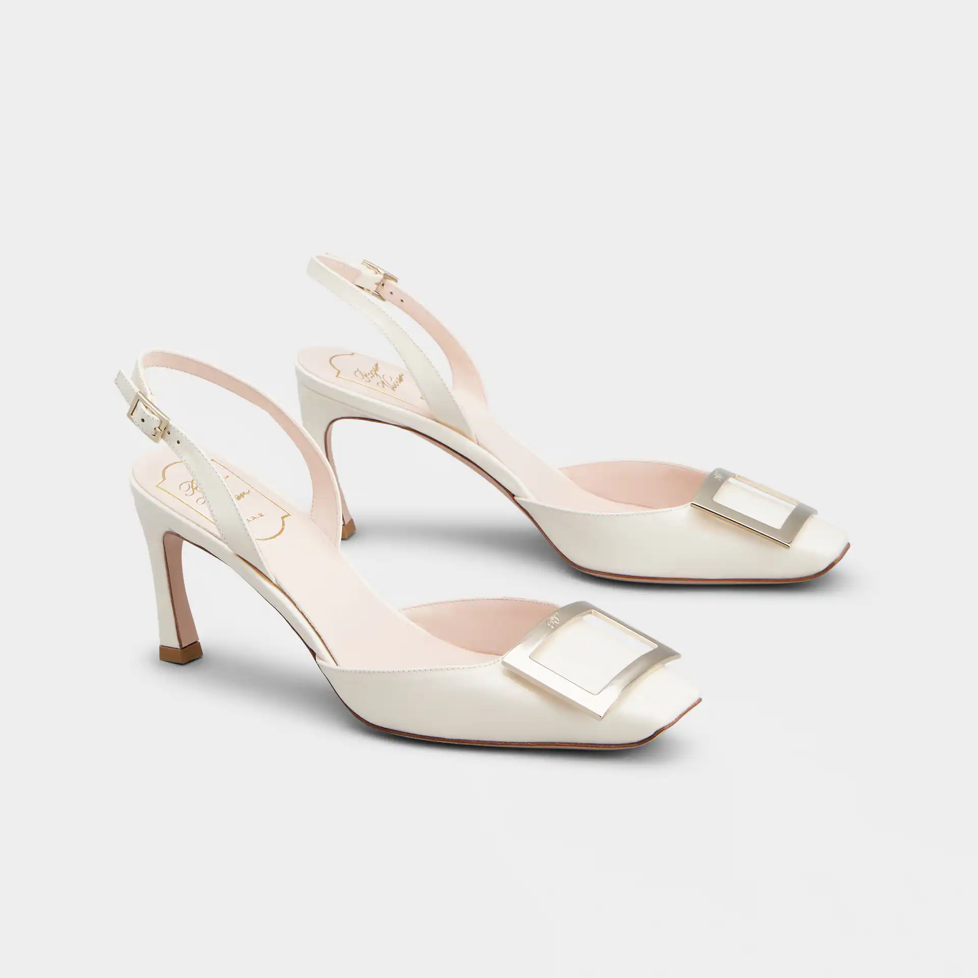 Roger Vivier Trompette Slingback Pumps High Heels In Beige Patent Leather With Metal Buckle (Heel Height 7cm)