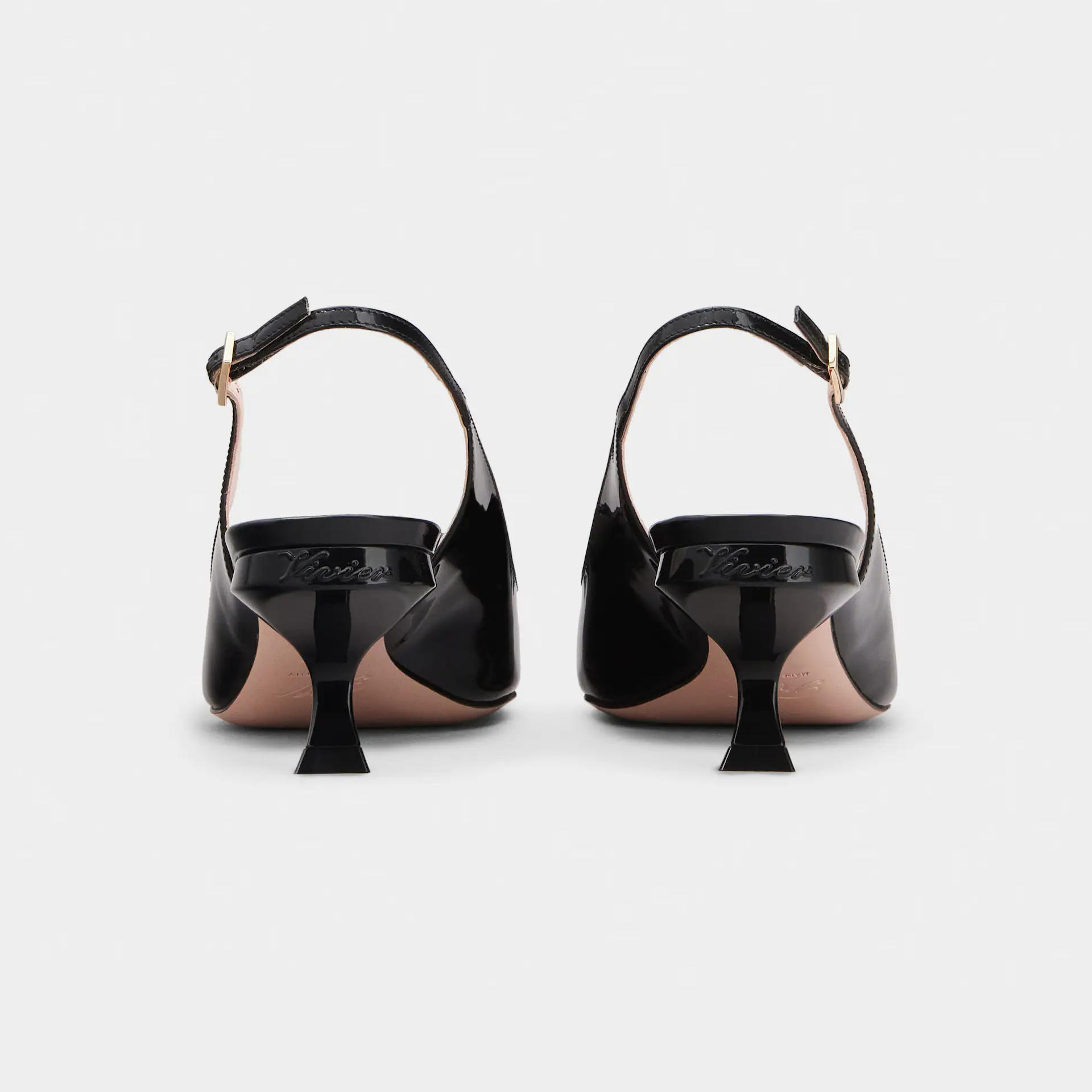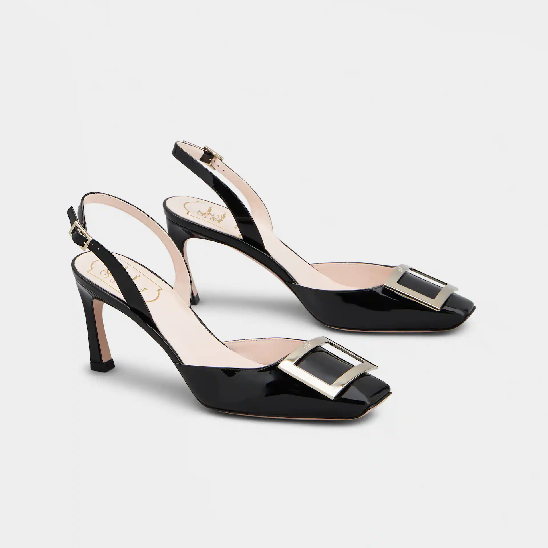 Roger Vivier Trompette Slingback Pumps High Heels In Black Patent Leather With Metal Buckle (Heel Height 7cm)