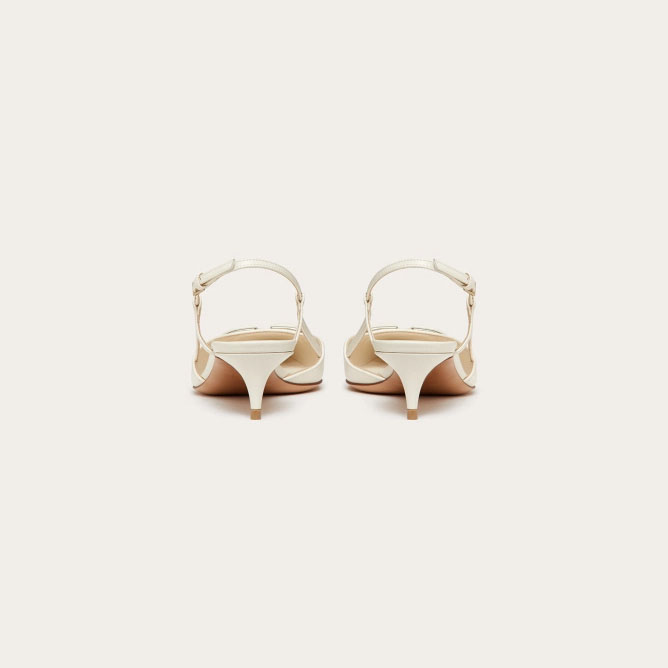 Roger Vivier Virgule Slingback Pumps High Heels In White Patent Leather With Lacquered Metal Buckle (Heel Height 5.5cm)