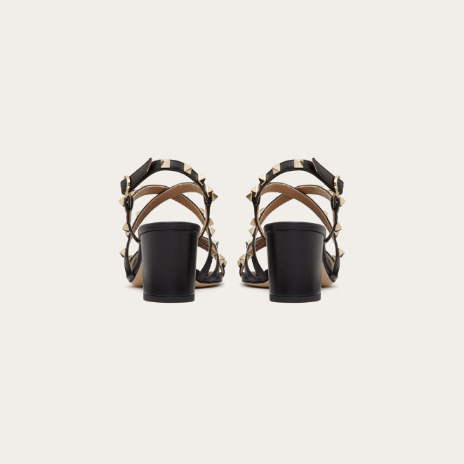 VALENTINO Black calfskin rivet heel sandals (heel height 6cm)