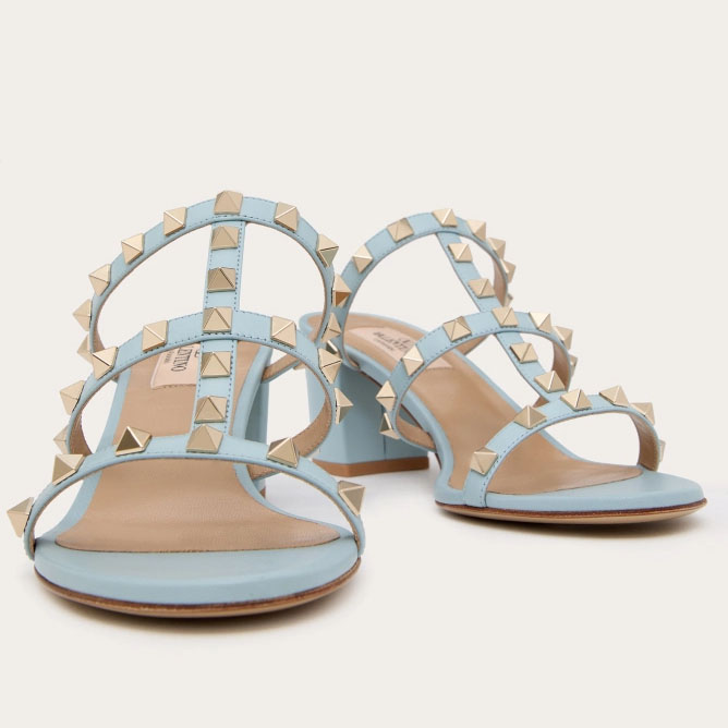 VALENTINO Blue calfskin rivet heel sandals (heel height 6cm)