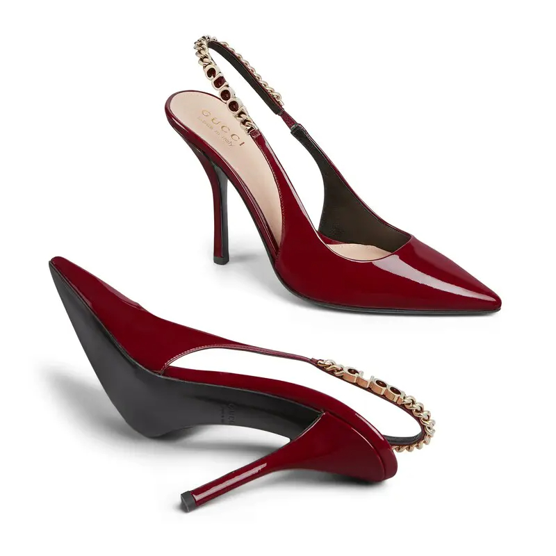 Gucci red patent leather pointed heels high heels shoes Rear lace up high heels