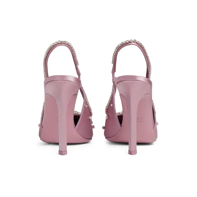 Gucci pink pointed heels crystal high heels shoes Rear lace up high heels