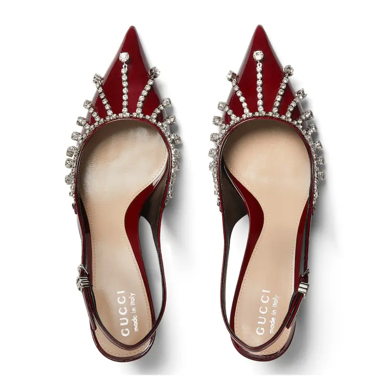 Gucci red pointed heels crystal high heels shoes Rear lace up high heels