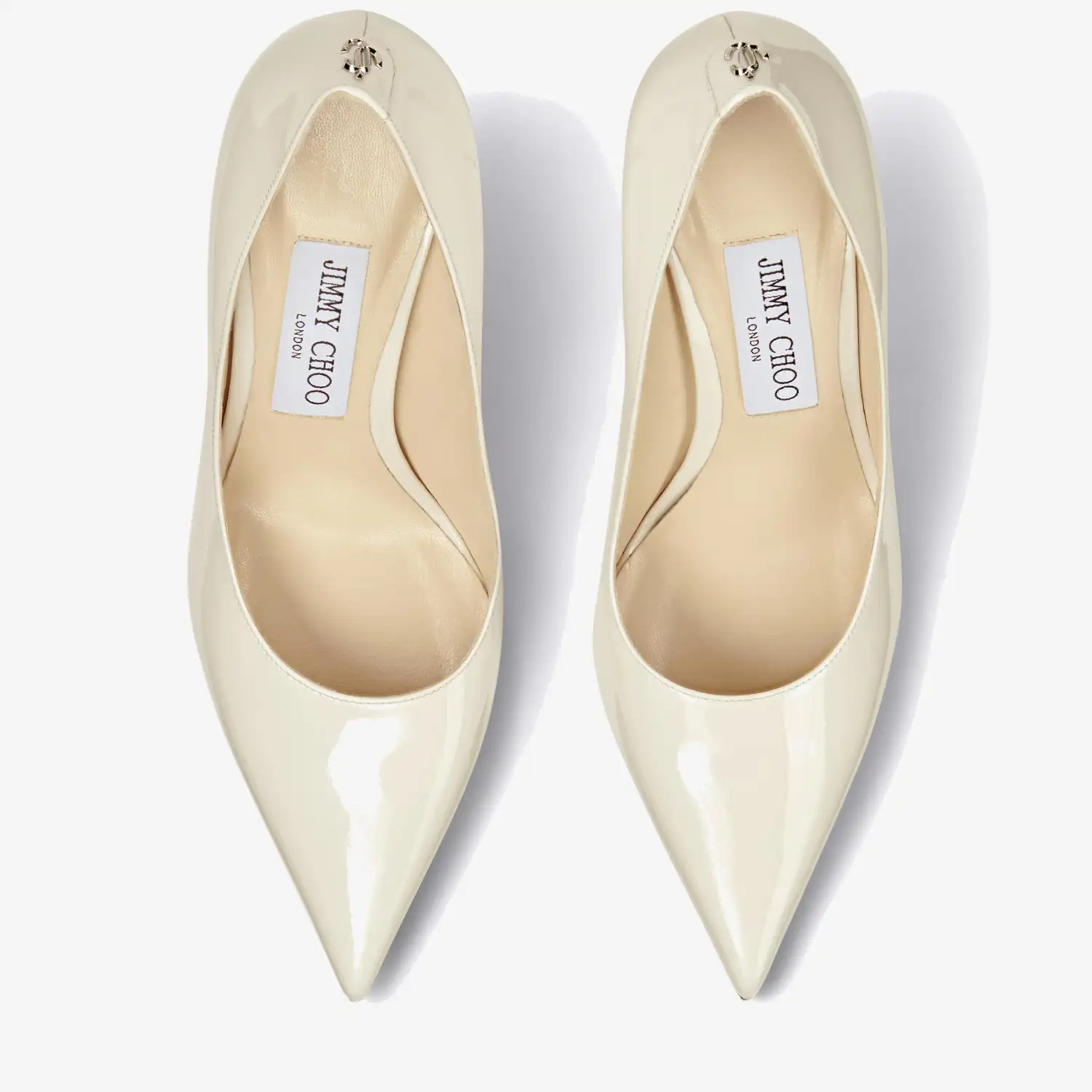 JIMMY CHOO Beige micro-shimmer pointed heels
