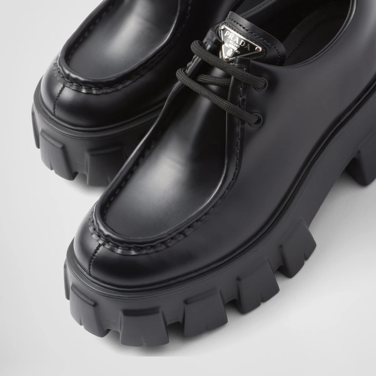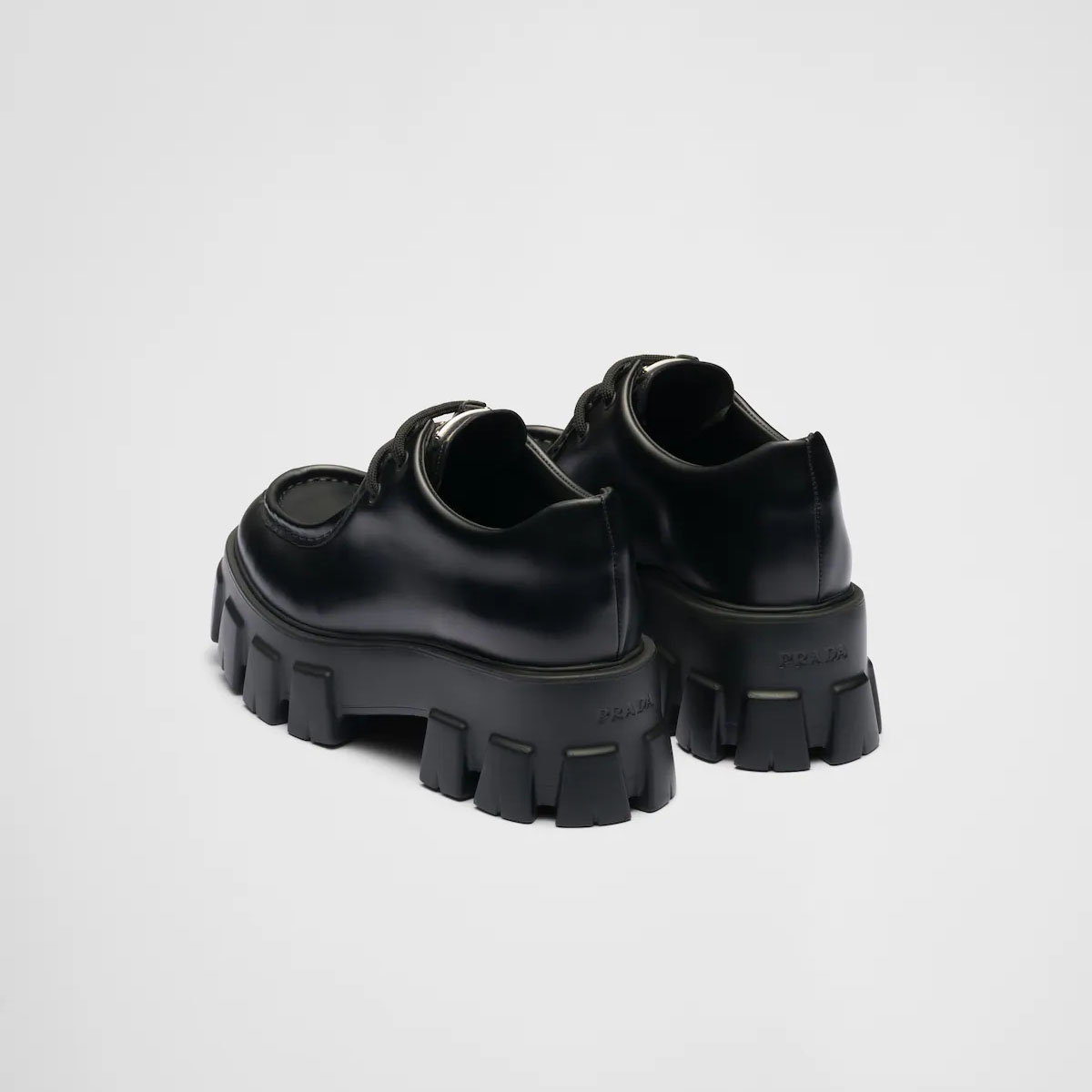 PRADA Black Monolith shiny leather lace-up shoes Loafers