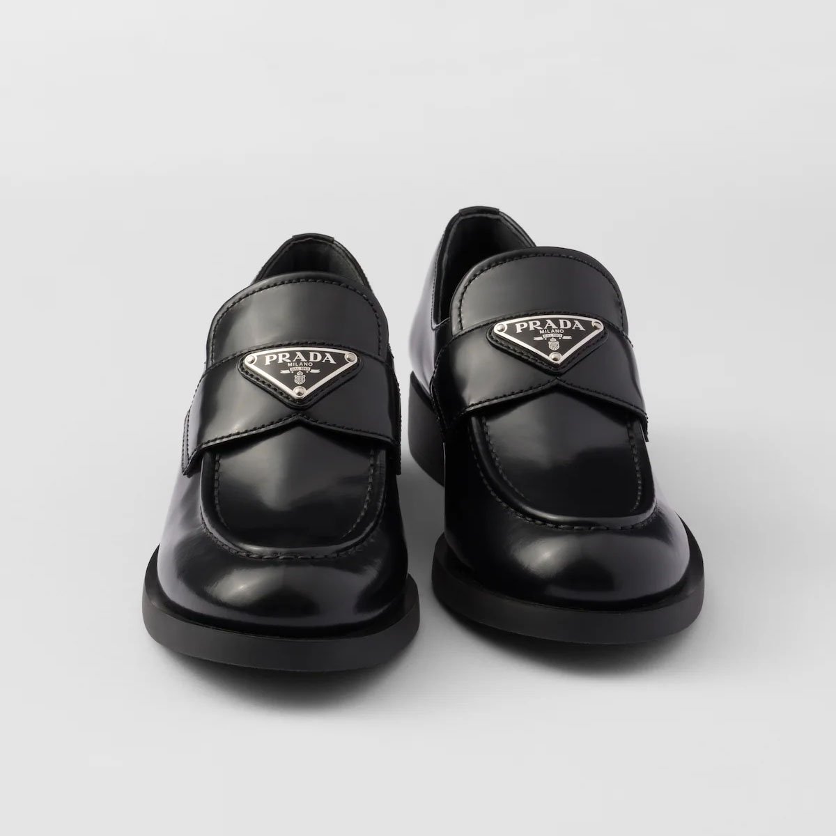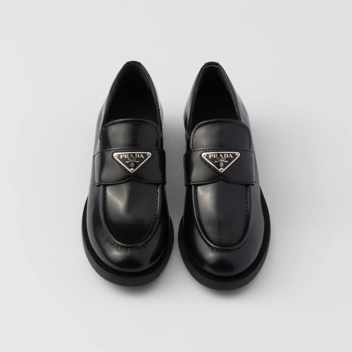 PRADA Black shiny leather loafers