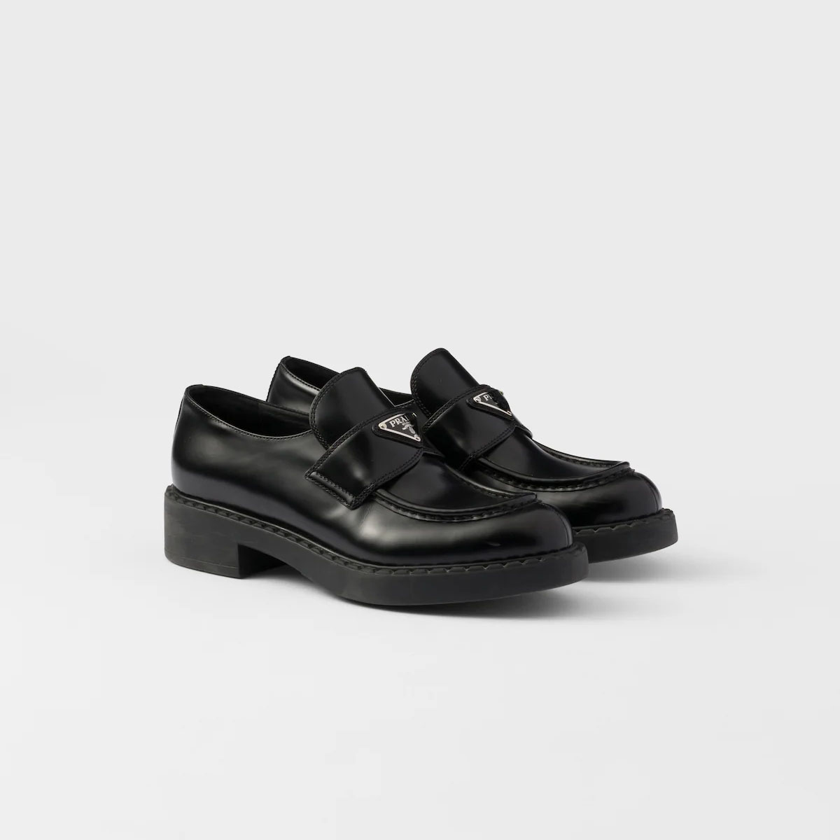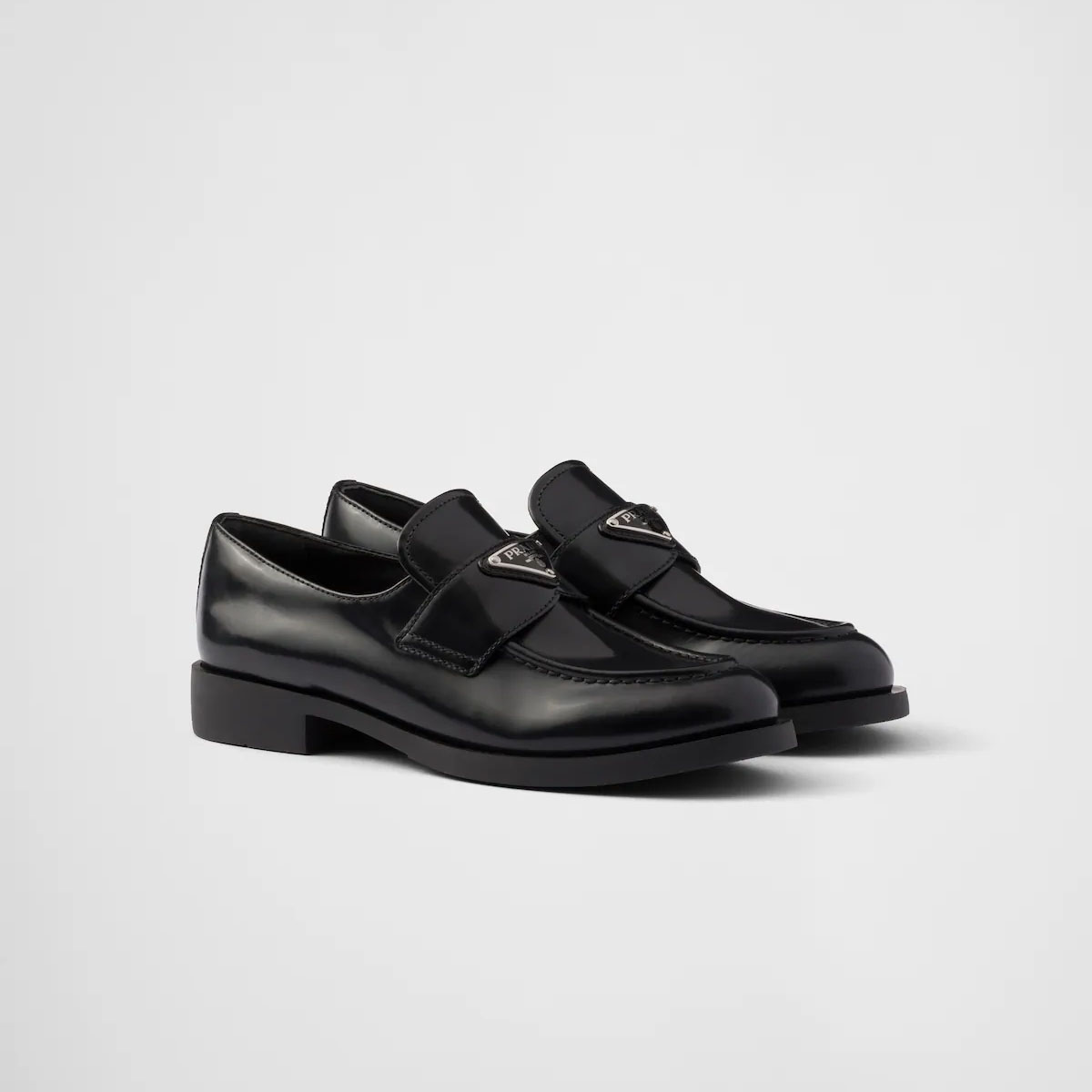 PRADA Black Monolith shiny leather Loafers