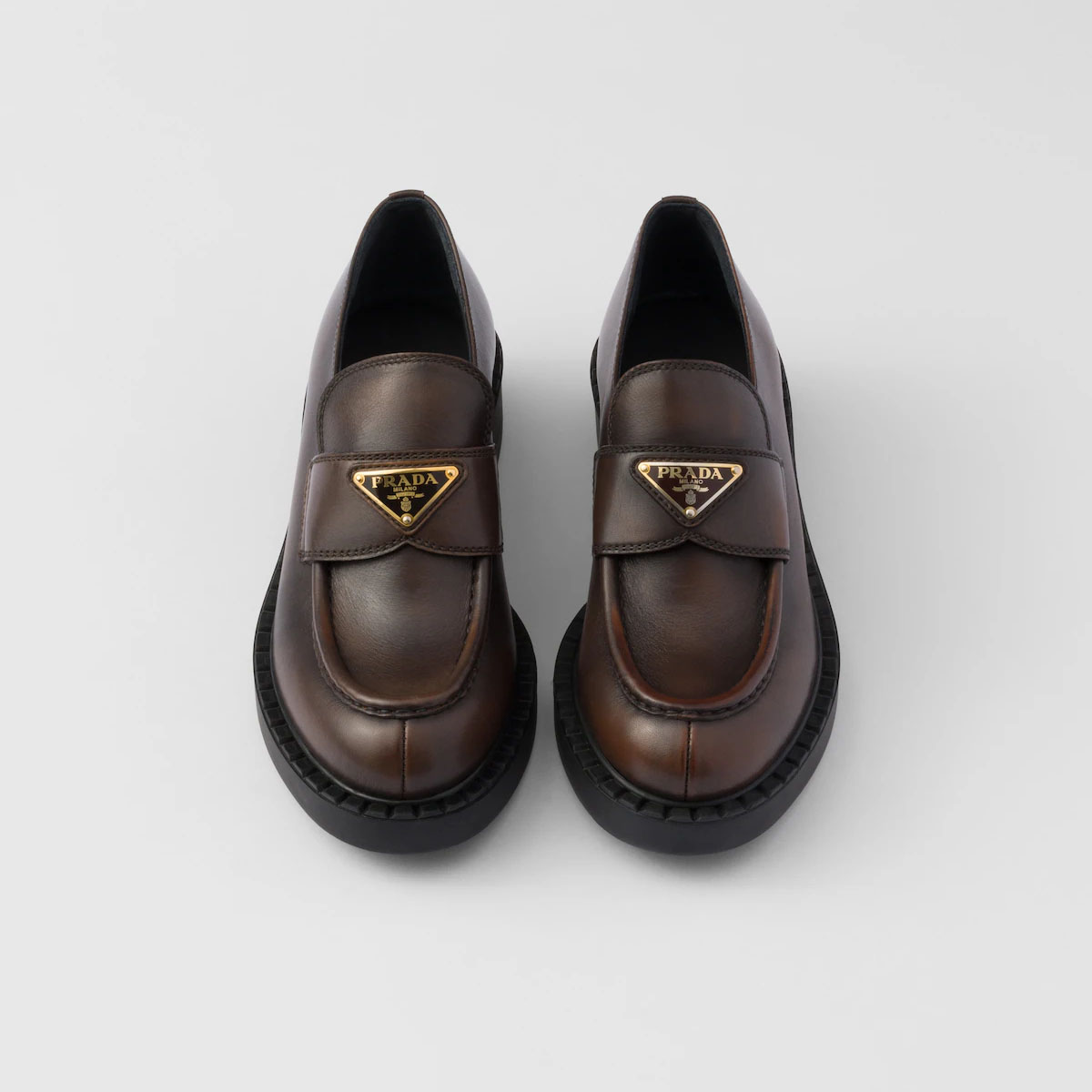 PRADA Black Chocolate patent leather loafers