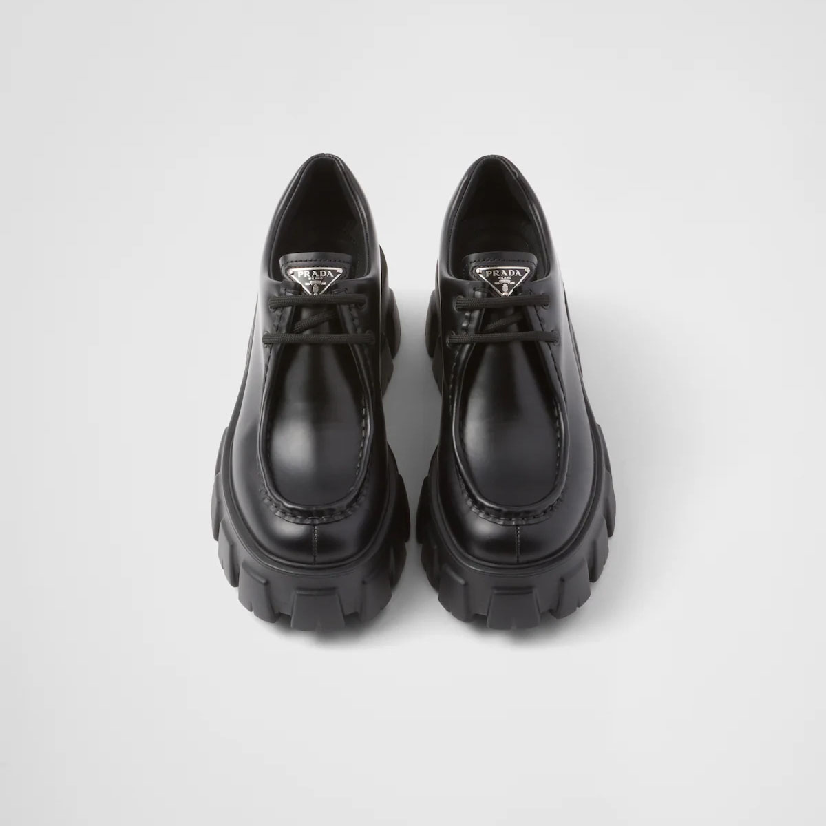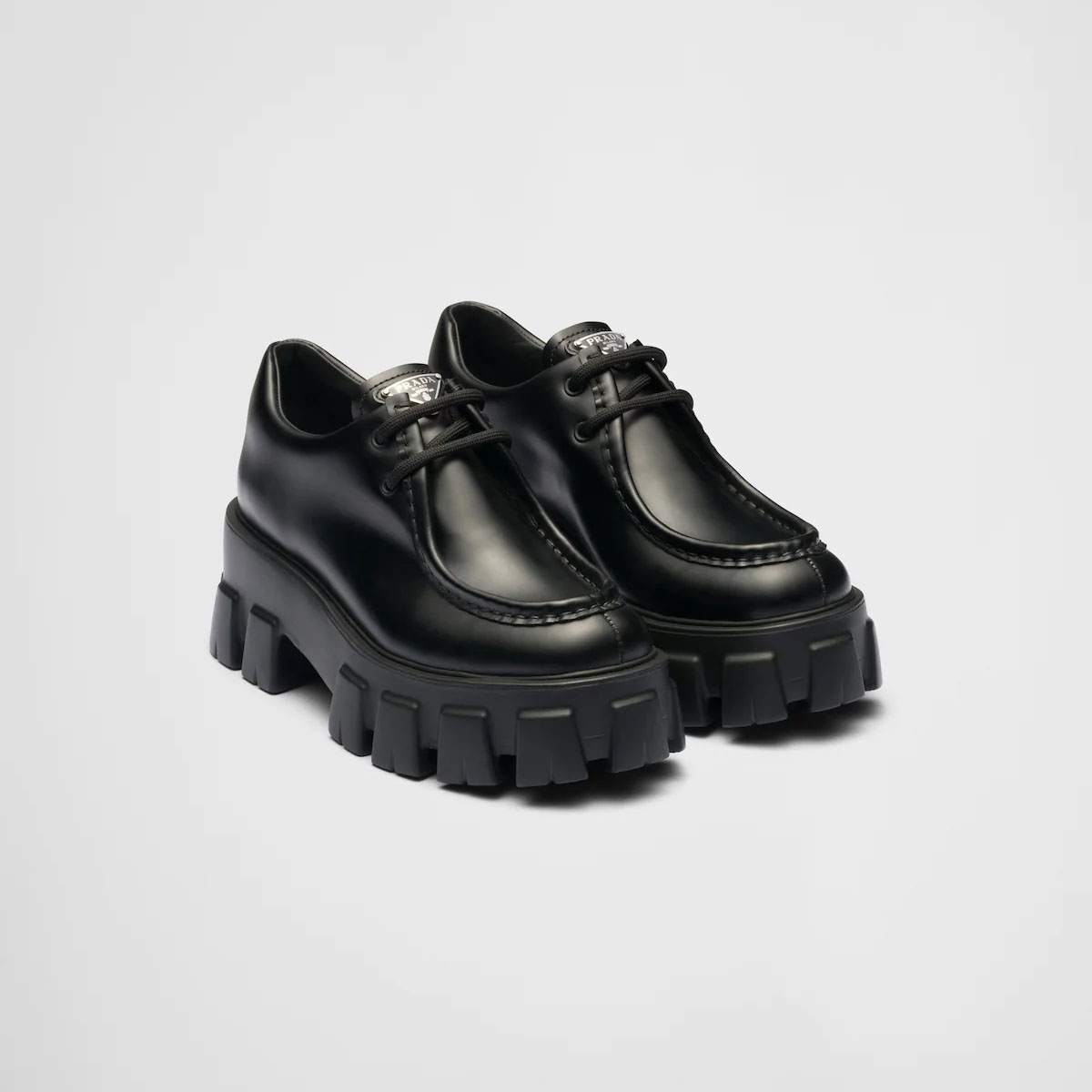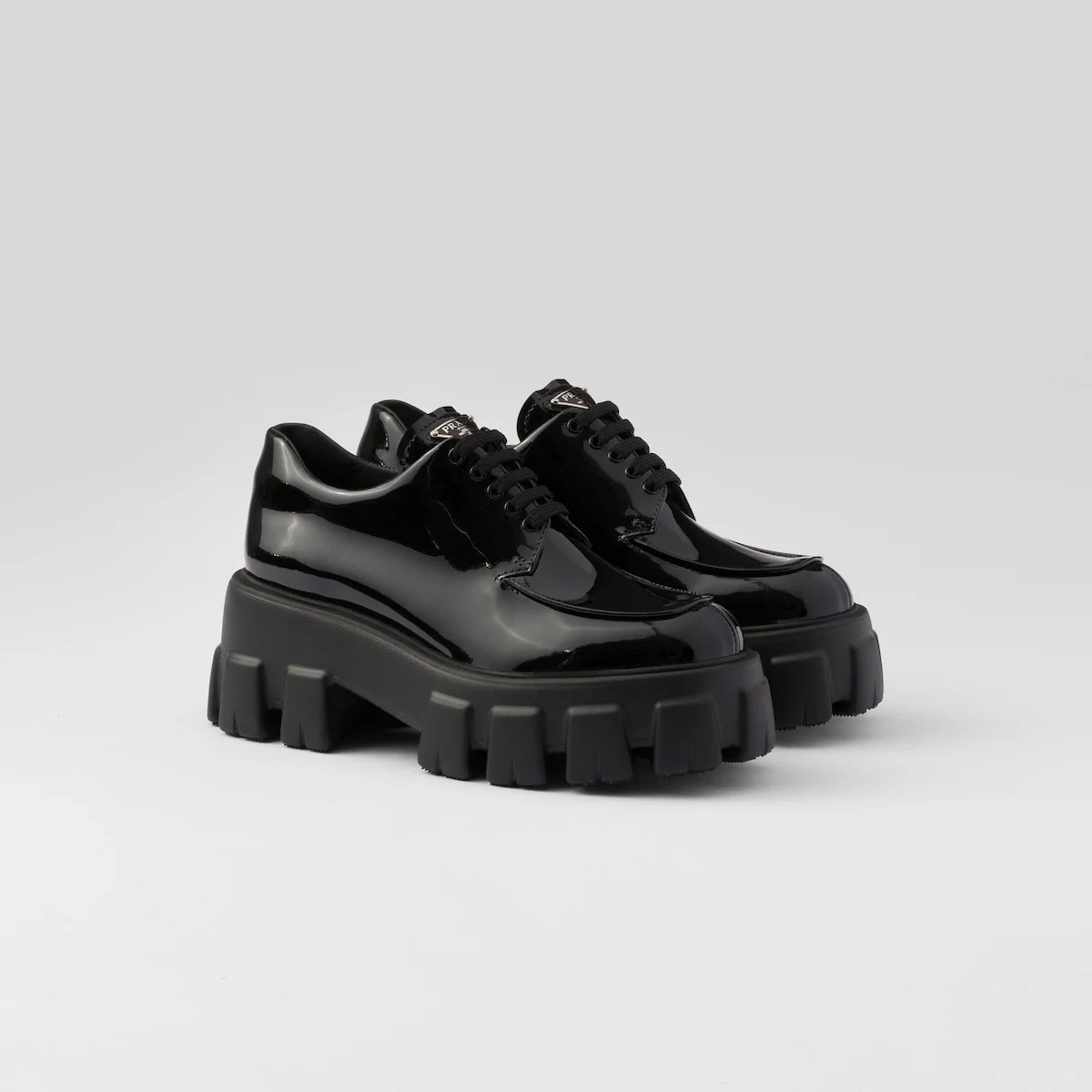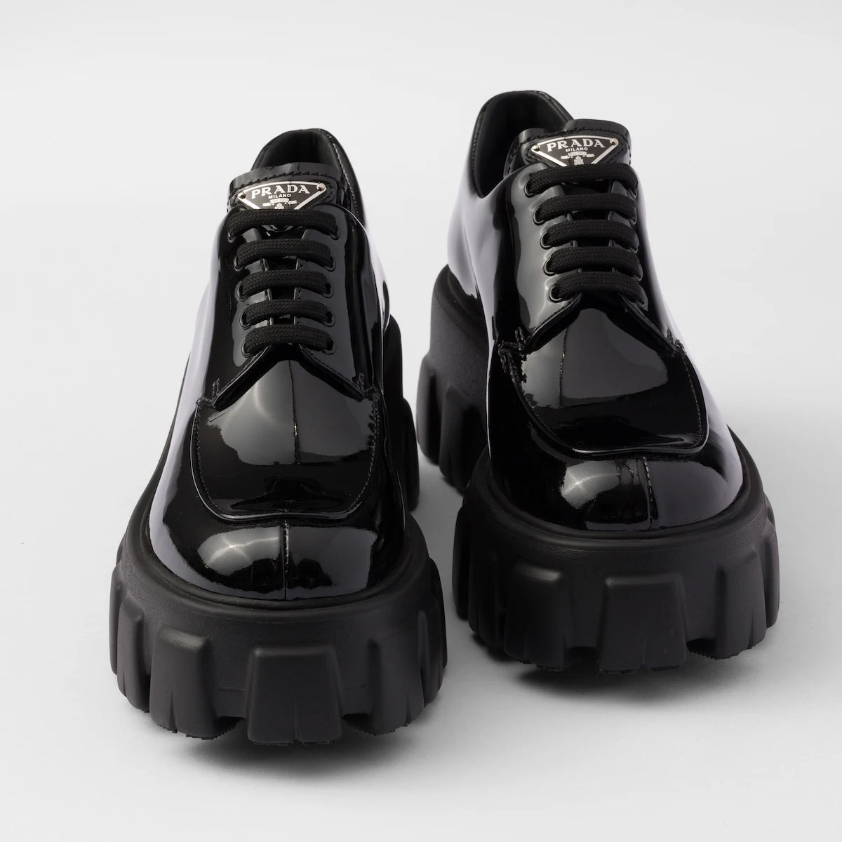 PRADA Black Monolith lacquered leather lace-up shoes