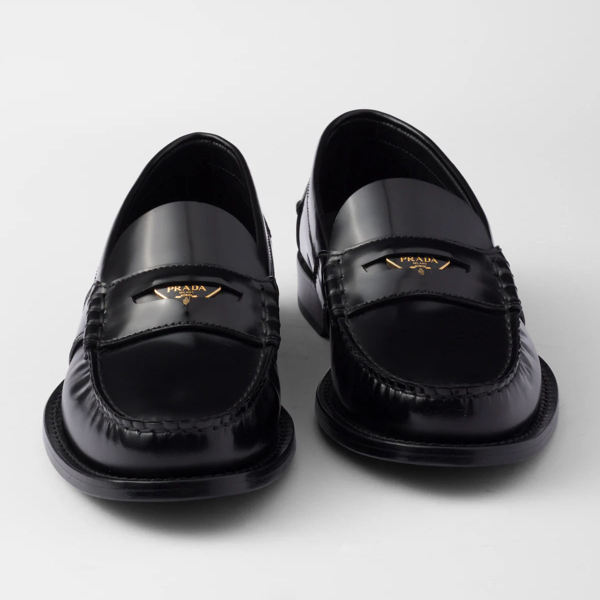 PRADA Black shiny leather loafers