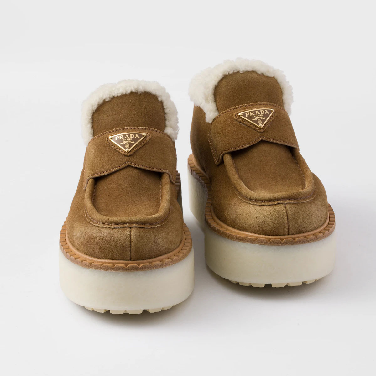 PRADA Cinnamon suede leather loafers