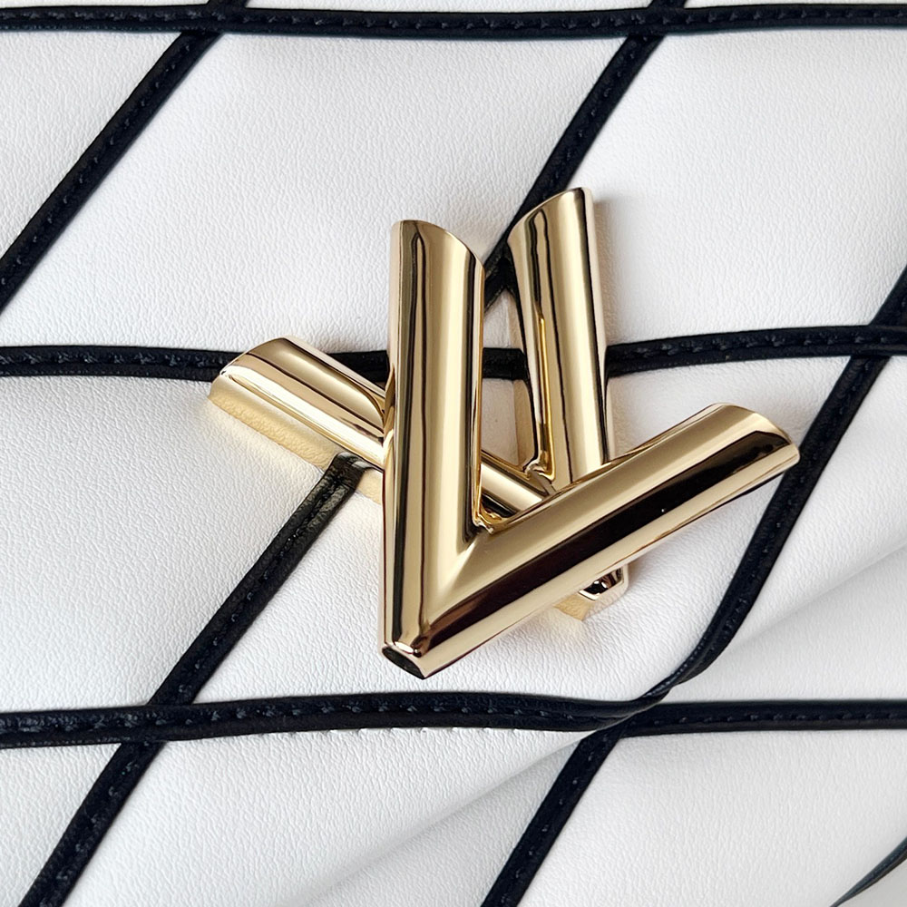 Louis Vuitton GO-14 MM White And Black Lambskin Leather Gold Hardware