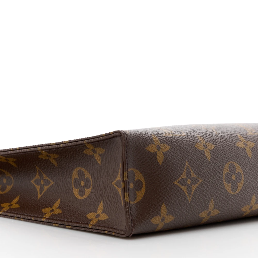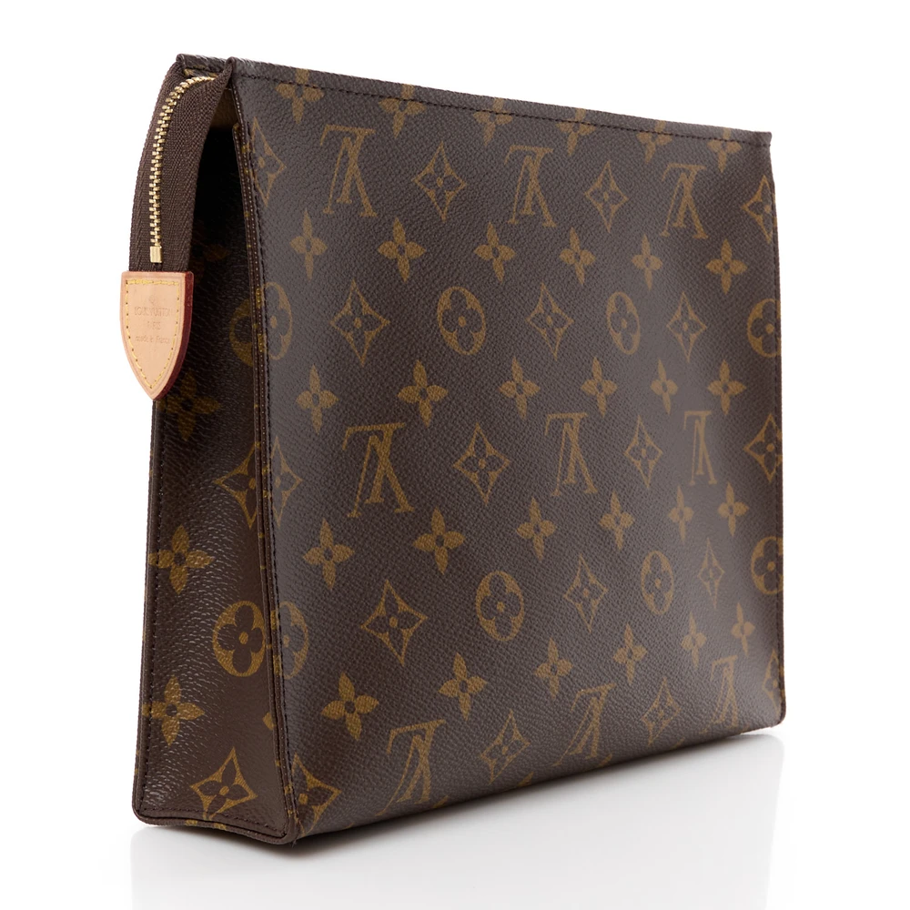 This Louis Vuitton Toiletry Pouch 26 Monogram Canvas is a classic and functional pouch. Made from Monogram canvas, it features a sleek design with a spacious interior that can hold toiletries or be used as a small clutch for essentials.