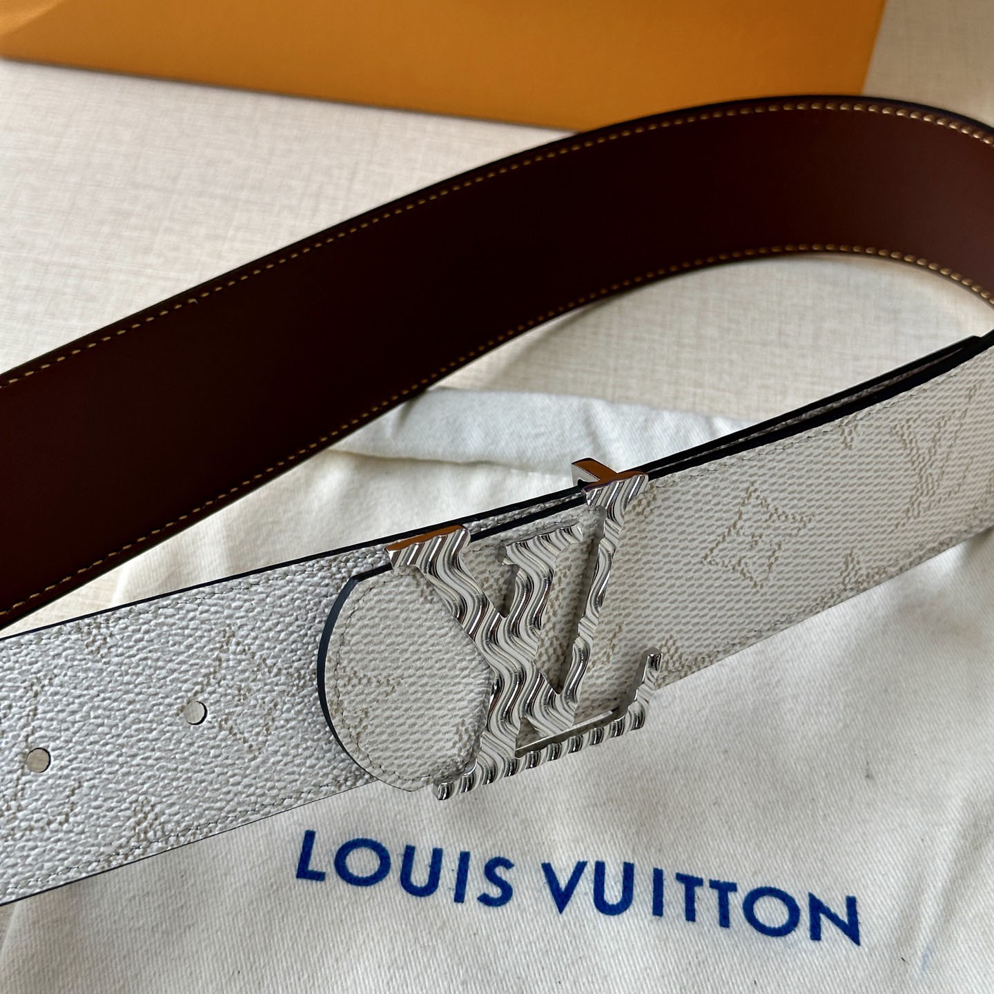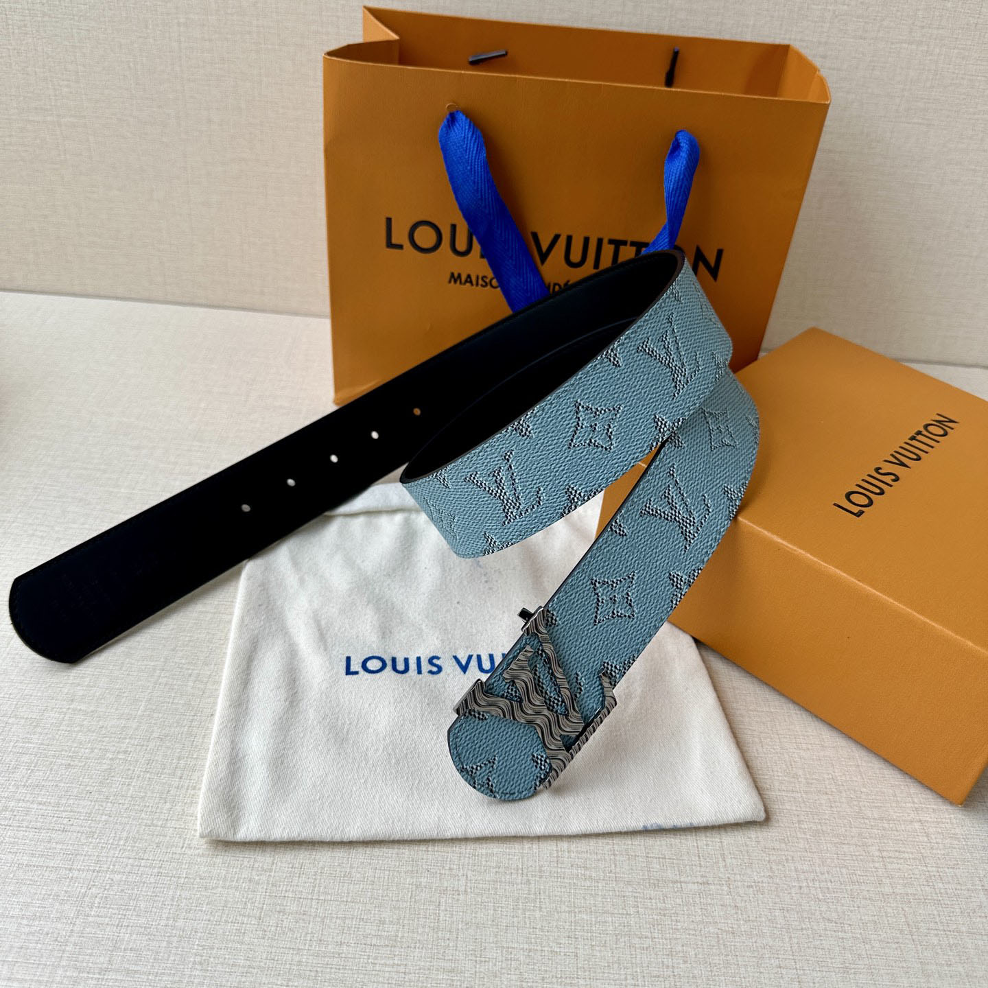Louis Vuitton Men’s Dimension Monogram Héritage Belt In Blue/White Canvas With Gold/Silver Hardware 40mm